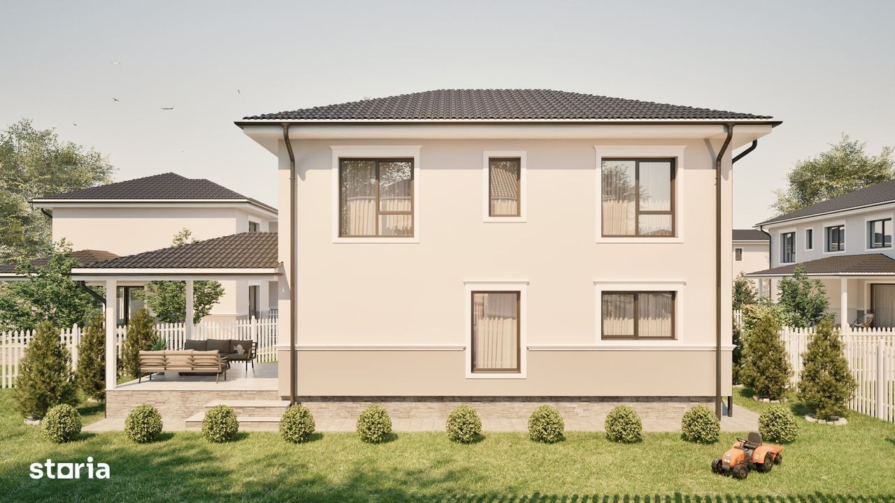 De vanzare o locuinta individuala moderna, parte dintr-un ansamblu rezidential recent dezvoltat in Sura Mica, intr-o zona linistita, cu acces rapid catre orasul Sibiu. Detalii: - Suprafata utila: 121 mp - Suprafata teren: 469 mp - Curte libera: aproximativ 367 mp - Regim de inaltime: Parter + Etaj + Pod de 69 mp utili. Compartimentare: - Parter: living spatios cu zona de dining si iesire pe terasa, bucatarie separata cu camara, dormitor/birou, baie, hol si spatiu de depozitare sub scari - Etaj: dormitor matrimonial cu baie proprie, doua dormitoare suplimentare, baie si hol - Pod: spatiu generos pentru depozitare. Dotari si specificatii tehnice: - Incalzire in pardoseala (sistem Uponor) si centrala termica Ariston 24 kW - Planseu de beton intre etaj si pod - Termoizolatie exterioara cu polistiren de 15 cm - Terasa acoperita si doua locuri de parcare amenajate - Drumuri asfaltate in interiorul ansamblului - Spatii verzi si loc de joaca dedicat rezidentilor - Eficienta energetica ridicata. Avantaje: - Casa individuala cu teren propriu generos - Compartimentare functionala si spatii luminoase - Proiect rezidential modern, cu infrastructura completa - Acces facil catre Sibiu si autostrada - Zona linistita, potrivita pentru familii. Stadiu de predare si modalitati de plata: Proprietatile se livreaza la stadiul de gri avansat, oferind posibilitatea personalizarii finisajelor. Optiuni de plata disponibile: - Plata integrala la semnare antecontract - Plata in transe (25% antecontract, 25% fundatie, 25% rosu, 25% contract final) - Credit ipotecar (avans minim 25%). Termen estimat de predare: primavara 2027. Locatie: Sura Mica - zona rezidentiala aerisita, in continua dezvoltare, situata la cateva minute de Sibiu si de principalele artere de circulatie, oferind un cadru ideal pentru un stil de viata confortabil si echilibrat.