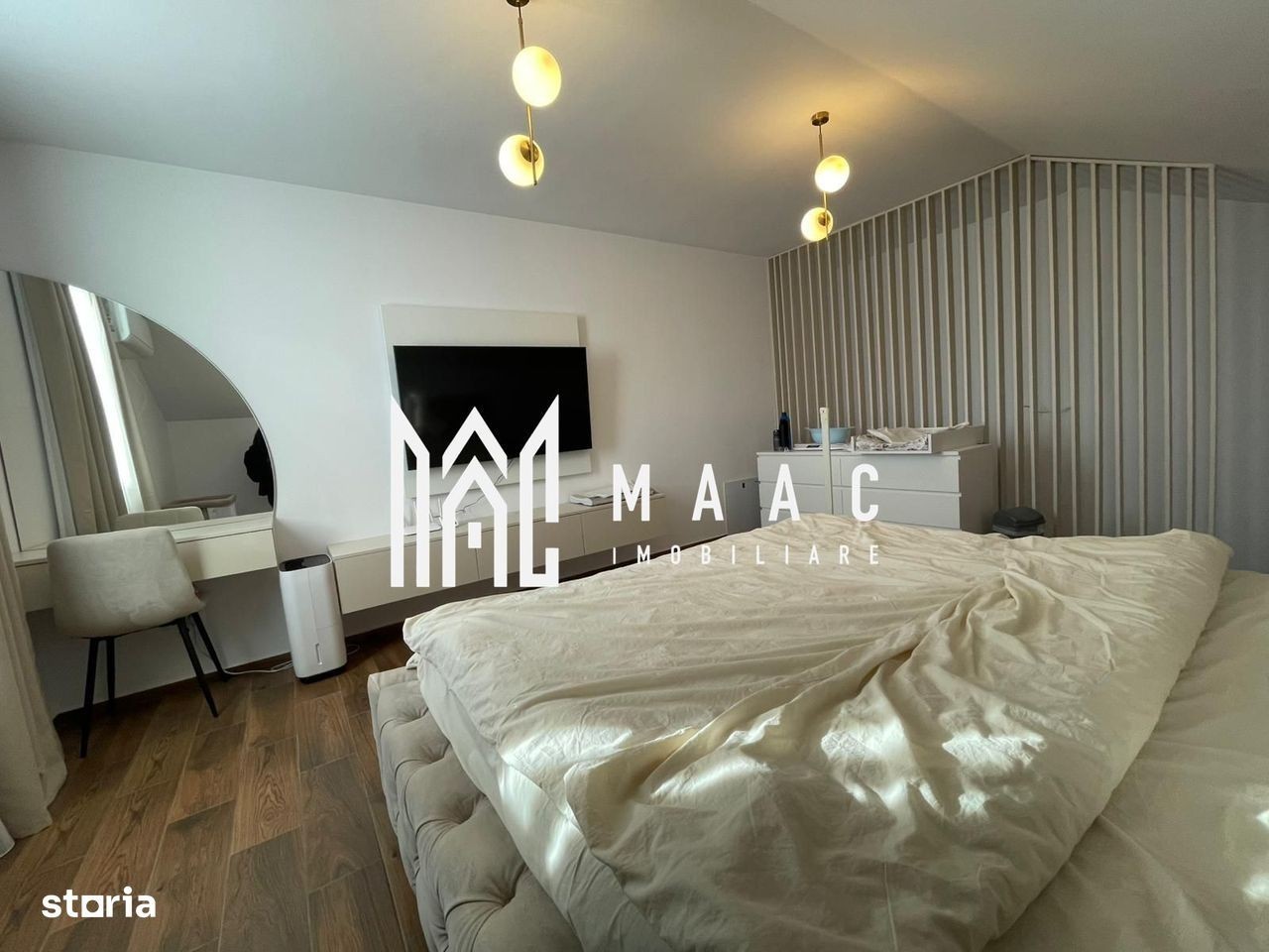 MAAC Imobiliare vă prezintă spre vânzare o proprietate modernă, spațioasă și complet echipată, ideală pentru familii care își doresc confort, eficiență și un stil de viață liniștit aproape de oraș. Casa se remarcă prin compartimentare practică, finisaje premium și tehnologie de ultimă generație pentru un consum redus de energie. Detalii generale Suprafață utilă: 116 mp Suprafață teren: 250 mp Amprentă la sol: 60 mp Curte liberă: 190 mp Parcare: până la 4 autoturisme în fața casei Parter - Spațiu deschis și lumină naturală Living open-space cu bucătărie complet mobilată și utilată - 24 mp Baie cu cabină de duș și geam de aerisire Dotări suplimentare incluse: robot de curățenie, mătură electrică, aparat de cafea profesional Etaj - Confort și funcționalitate Dormitor semimobilat (pat + dulap încăpător) Dormitor nemobilat, ideal pentru configurare după preferințe Dressing dedicat, cu mașină de spălat și uscător electric Baie elegantă, dotată cu cadă, geam pentru ventilație naturală, lavoar și oglindă realizate pe comandă, wc suspendat - finisaje premium Mansardă Dormitor matrimonial complet mobilat, cu mobilier la comandă, TV și aer condiționat Spațiu de depozitare de aproximativ 40 mp, perfect pentru organizare suplimentară Dotări tehnice - Eficiență și confort Pompă de căldură modernă, cu 8 curbe de compensare ce reglează automat temperatura în funcție de condițiile exterioare Încălzire în pardoseală, pentru confort termic optim și consum redus Localizare Proprietatea este situată într-o zonă liniștită, ferită de agitație, dar cu acces rapid către oraș și toate punctele de interes - ideală pentru cei care își doresc liniște fără a renunța la proximitatea urbană. Pentru mai multe informații sau pentru programarea unei vizionări, vă invităm să contactați MAAC Imobiliare, menționând ID anunț: CP 2802817.