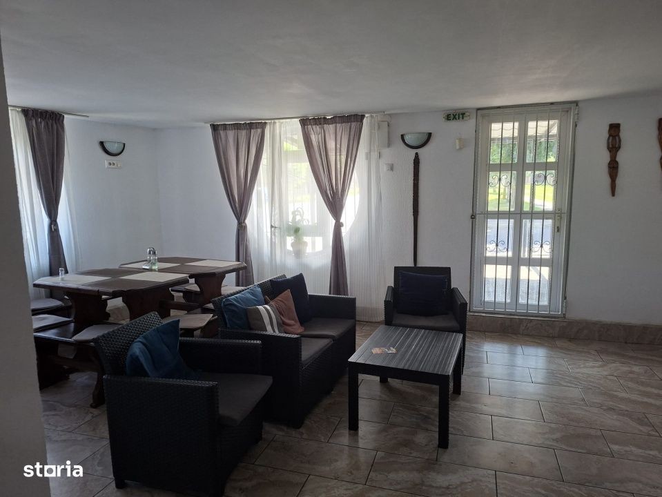 Spațiu comercial de închiriat - Râșnov, DN73 Vizibilitate excelentă la drum național, zonă cu trafic intens Detalii: Se închiriază întreaga clădire sau parțial Pretabil pentru activități economice sau birouri La parter: sală mese și bucătărie, terasă acoperită de 22,7 mp La etaj: 3 camere, fiecare cu baie proprie (ideal pentru birouri sau cazare personal) Toate utilitățile disponibile (apă, curent, gaz) Condiții: Contract de închiriere pe termen lung Chirie: între 1.000 € - 2.000 € / lună, în funcție de suprafața închiriată