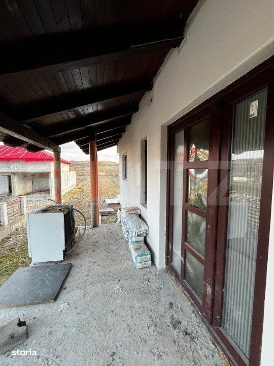 Blitz Imobiliare ofera spre vânzare casă semifinisată, construcție nouă, tip duplex, cu 175 mp utili, situată într-o zonă liniștită, la strada principală. Suprafață teren: 1457 mp Regim de înălțime: Parter + Mansardă Compartimentare: Parter: Living spațios, bucătărie,baie Mansardă: 2 dormitoare Încălzire: Prin pardoseală la parter Prin calorifere la etaj Centrală proprie Utilități: apa,fosa septica,centrala pe lemne si ulei Alte beneficii: curte spatioasa,garaj,beci,terasa,izolatie pe exterior Se acceptă schimb cu apartament sau teren. Pentru mai multe detalii și vizionare nu ezitati sa ne contactati!