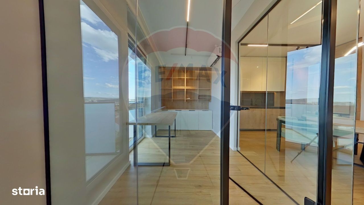 RE/MAX va propune spre inchiriere un penthouse ultrafinisat situat in zona semi-centrală, a orasului,pe strada Constantin Brancusi. Apartamentul se află la etajul 5 si ER al unui bloc premium finalizat in anul 2025 si are o suprafată de 91mp utili la care se adaugă un balcon si o terasă panoramică de aprox 20mp. Ambele beneficiază de o privelista superbă asupra orasului. Imobilul in care se află apartamentul dispune de lift, videointerfon, curte interioară comună cu loc de joaca si este localizat la numai 10 minute plimbare de P-ta Cipariu. La intrare ne intampină un hol generos de 8 mp dotat cu dressing, scara interioară si o baie. Zona de zi impresionează printr-un design modern și funcțional. Livingul este amenajat cu un colțar spațios și două fotolii confortabile, creând un spațiu ideal pentru relaxare și socializare. Bucătăria modernă este complet utilată și integrată armonios în zonă, oferind atât un aspect elegant, cât și practic. Alaturi se află si un birou compartimentat cu pereți de sticlă perfect pentru activități profesionale sau studiu. Mobilierul realizat la comandă este adaptat perfect spațiului. La etaj, locuința dispune de un dressing generos, încorporat, prevăzut cu mașină de spălat și uscător. Dormitorul matrimonial are baie proprie, dotată atât cu cadă, cât și cu duș, oferind intimitate și confort sporit. În completare, se află o cameră de copii luminoasă și bine proporționată. Ambele dormitoare au acces direct la o terasă cu pardoseală flotantă, ideală pentru relaxare în aer liber. Întreaga locuință beneficiază de sistem de aer condiționat pentru confort optim în orice anotimp. Se inchiriaza impreună cu un loc in garajul subteran pentru care se percepe o taxa suplimentară de 100euro. Va rugăm sa parcurgeti turul virtual si sa nu ezitati sa ne contactati pentru vizionari!