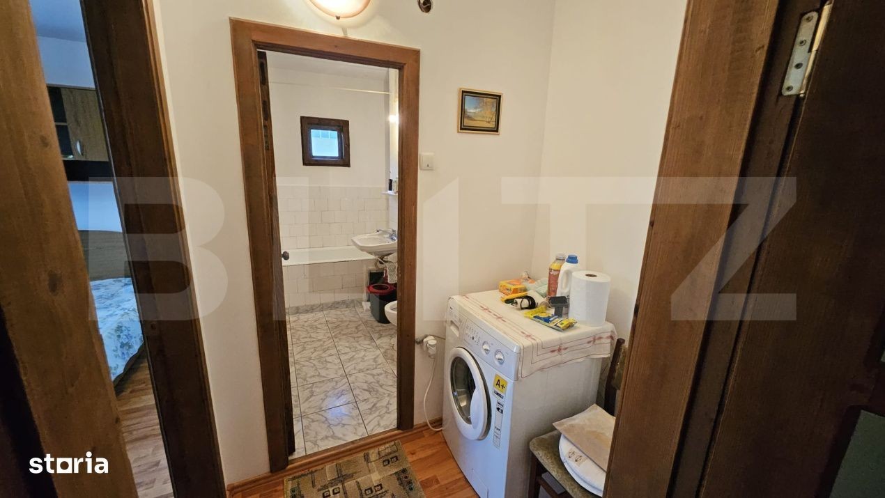 Blitz Târgoviște vă propune în exclusivitate un apartament cu 2 camere, cu suprafață utilă de 50 mp, situat la etajul 2 din 4, într-un bloc solid, construit între 1978-1980 din plăci de beton, cu acoperiș din azbociment și izolat exterior cu polistiren de 10 cm. Locuința este semidecomandată, bine întreținută și se vinde mobilată și utilată, fiind disponibilă imediat după perfectarea documentelor. Compartimentare: - Hol generos la intrare - Living luminos cu acces la balcon - Dormitor spațios - Bucătărie închisă, complet mobilată - Baie cu geam (funcțională, necesită renovare) - Balcon (necesită renovare) Dotări: - Centrală termică proprie - Geamuri termopan PVC - Ușă metalică la intrare - Uși interioare din lemn - Orientare est-vest - lumină naturală pe tot parcursul zilei, răcoare dimineața în dormitor și lumină plăcută după-amiaza în zona de zi. Beneficii zonă: - Proximitate față de Bulevardul Constantin Brătianu - Acces facil la transport public, școli, grădinițe, magazine, farmacii, piețe și Mall. - Zonă urbanizată, liniștită, ideală pentru locuit Utilități la zi: apă, gaz, curent, canalizare - toate branșate. Apartamentul este ideal pentru locuit sau ca investiție pentru închiriere, având un raport excelent între poziție, preț și potențial. Te așteptăm la vizionare!