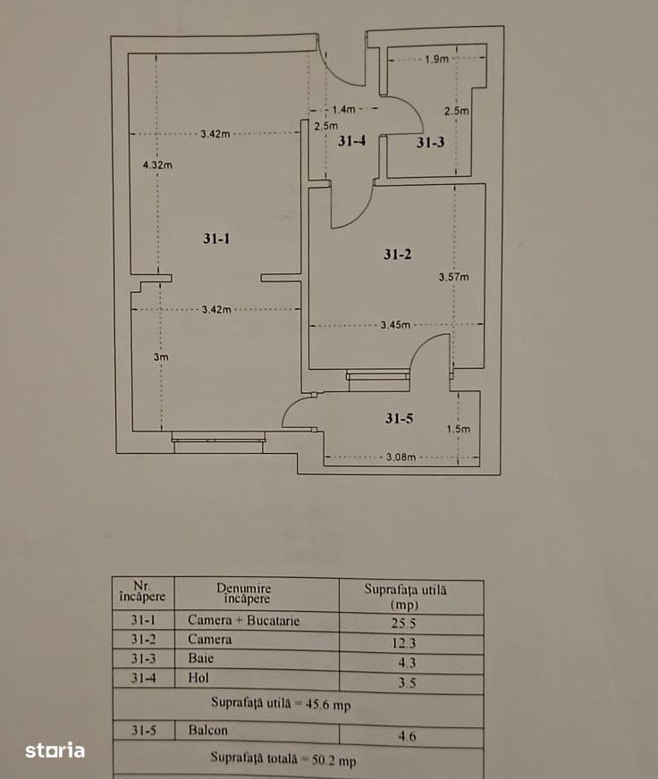 Habitat Grup Imobiliare va ofera spre vanzare un apartament 2 camere semidecomandat avand o suprafata utila totala de 50,2 mp la pretul promotional de 105.000 Euro MOBILAT MODERN si UTILAT + ACTE GATA DE MUTARE (liber de sarcini) sau 102.000 Eur NEMOBILAT si NEUTILAT. Apartamentul de 2 camere semidecomandat cu o suprafata utila de 45,6 mp + balcon de 4,6 mp mp este situat la etajul 3 unui bloc cu P+ 3 etaje prevazut cu lift si este finalizat cu ACTE GATA DE MUTARE si amplasat la doar 5 minute de statia STB autobuz 330. In imediata vecinatate regasim Parcul Teilor, magazine, scoli, gradinite, spital, precum si mijloace de transport in comun. Compartimentarea ideala pentru familia dumneavoastra si anume : - Living + bucatarie : 25,5 mp - Dormitor : 12,3 mp - Hol : 3,5 mp - Baie: 4,3 mp - Balcon : 4,6 mp Apartamentul este echipat si utilat cu gresie, faianta, parchet, usi interior si cea de exterior securizata, geamuri termopan tip tripan, centrala proprie in condensatie de 24 kw, si incalzire in pardoseala, baia echipata si utilata. Apartamentul este bransat la toate utilitatile Enel, Engie si Apanova. Amplasat la doar 5 minute de statia STB autobuz 330, in apropriere de supermarket MEGA-IMAGE, Profi, gradinite, scoli, farmacii, spitale, spatii verzi si de agrement, dar si Parcul Teilor, confera confortul mult dorit pentru familia dumneavoastra. Oferim asistenta gratuita in vederea intocmirii dosarului de creditare. Comision cumparator 2%. Poze reale din interiorul apartamentului. Locatie birou agentie imobiliara : strada Postasului nr.29, Sector 3 Waze: Habitat Group Estate Program vizionari: Luni - Vineri : 10:00 - 18:00 si Sambata : 10:00 - 14:00 Recomand vizionare Bogdan Mavrogheorghe