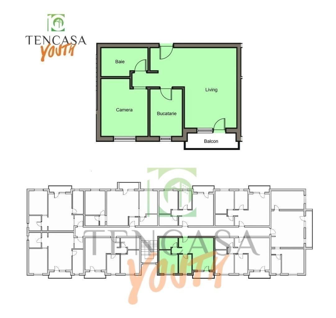 TenCasa-Youth vă propune spre vanzare un apartament nou de 2 camere direct de la dezvoltator (45.8 m² utili, Etaj 1, Vedere Răsărit), cu predare în martie 2026. Accentul este pus pe calitatea vieții: beneficiați de încălzire în pardoseală (PE-XA), centrală Riello Franta 24 kW și o izolație de excepție (pereți Porotherm 30 cm, izolație dublă la acoperiș). Finisajele premium includ gresie porțelanată Italia, uși Porta Doors și tâmplărie PVC 7 camere/3 sticle.