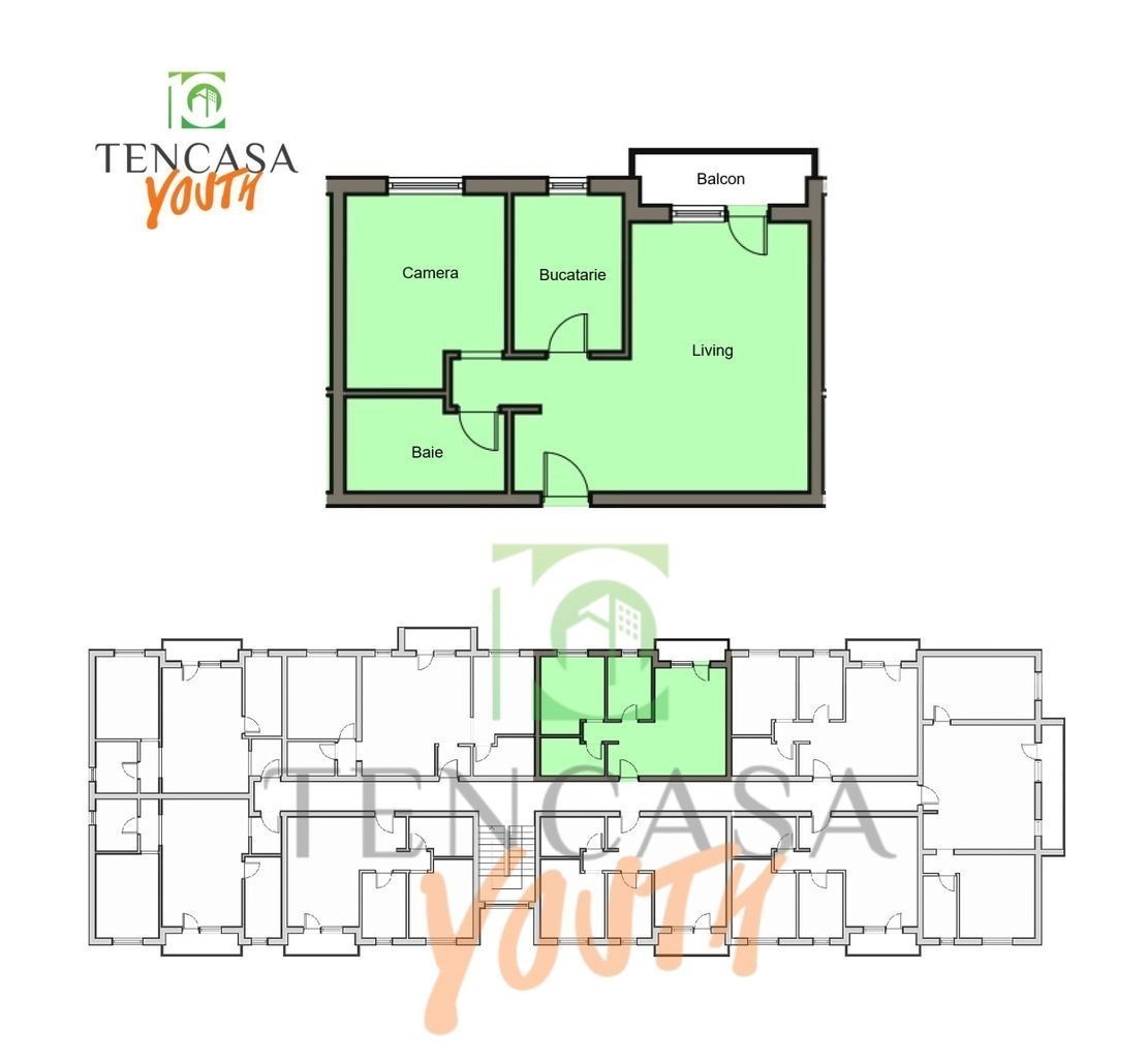Disponibil prin TenCasa-Youth: apartament de 2 camere, 45.8 m² utili, etajul 1, cu vedere spre locul de parcare. Accentul este pus pe durabilitate și eficiență energetică. Structura este din beton armat, iar pereții despărțitori sunt din Porotherm Efficient, cu o grosime totală de 30 cm. Placa dală de 24 cm între nivele și izolația dublă a acoperișului asigură un mediu liniștit. Predare: martie 2026.