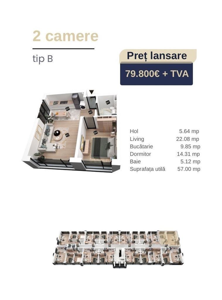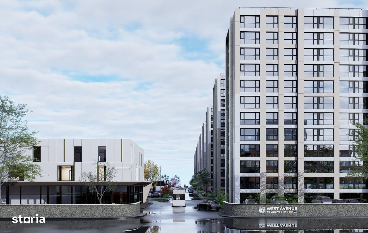 Apartament de 2 camere, 57 mp utili, situat în West Avenue Residence - ansamblu rezidențial nou, tip gated community, în apropiere de Militari Shopping Center. Compartimentare eficientă: living luminos cu bucătărie open-space, dormitor spațios și baie modernă. Dotări incluse: încălzire în pardoseală automatizată, centrală proprie, aer condiționat Daikin, tâmplărie premium Salamander BlueEvolution 92 cu tripan si finisaje premium Delta Studio.