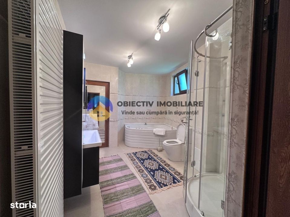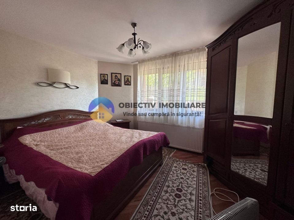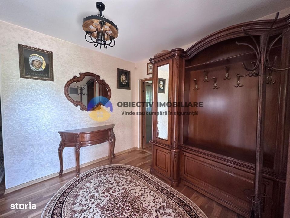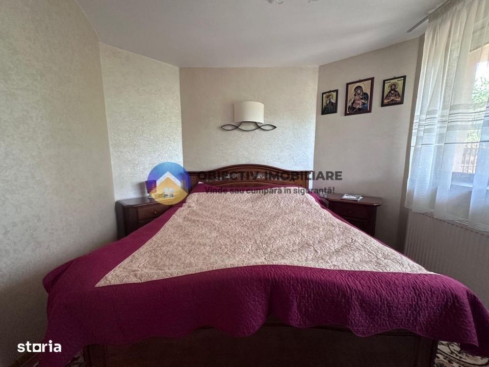 Obiectiv Imobiliare vă propune spre vânzare o casă stilată, modernă și complet utilată, situată într-o zonă liniștită și bine poziționată din localitatea Alexandru cel Bun. Strada Perlei, județul Neamț Detalii imobil: Suprafață utilă: 370 mp Suprafață teren: 1066 mp Regim de înălțime: Parter + Etaj + Mansardă Compartimentare: 4 camere, decomandate Garaj inclus Dotări și utilități: Construcție solidă: cărămidă, beton, elemente din lemn Izolație termică: polistiren de 5 cm + 10 cm An construcție: 2004 Orientare: Sud-Vest Mobilată și utilată Apă curentă + Sursă proprie de apă Fosa septică Gaz Curent electric Centrală termică proprie pe lemne și gaz Spațiu exterior ideal pentru relaxare: Proprietatea beneficiază de un foișor generos, perfect amenajat pentru momente de relaxare, mese în aer liber sau seri plăcute alături de familie și prieteni. Curtea spațioasă și atmosfera liniștită creează un vibe ideal pentru petrecerea timpului în aer liber, în intimitate și confort. Contact & Vizionări: Pentru mai multe informații sau pentru a programa o vizionare, vă așteptăm la sediul agenției noastre: Piața Mihail Kogălniceanu nr. 2, Piatra Neamț (Complex Pietricica, etaj 1) Telefon: