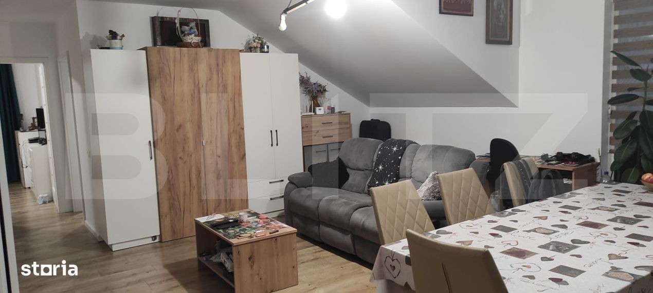 Vand apartament in Floresti, pe strada Tautului, zona parcul Poligon. Apartamentul are o suprafata utila de 83 mp, compus din living cu bucatarie (open space), 2 dormitoare, 2 bai, balcon si 2 locuri de parcare, cu bariera. Apartamentul se vinde complet utilat si mobilat. Apartamentul se afla la mansarda, dar are pod pe 80% din suprafata.