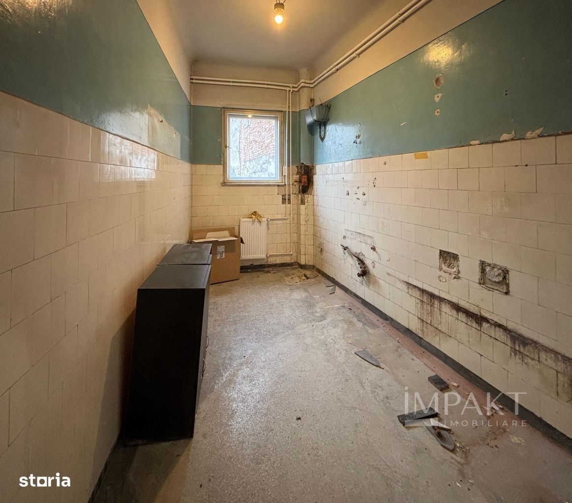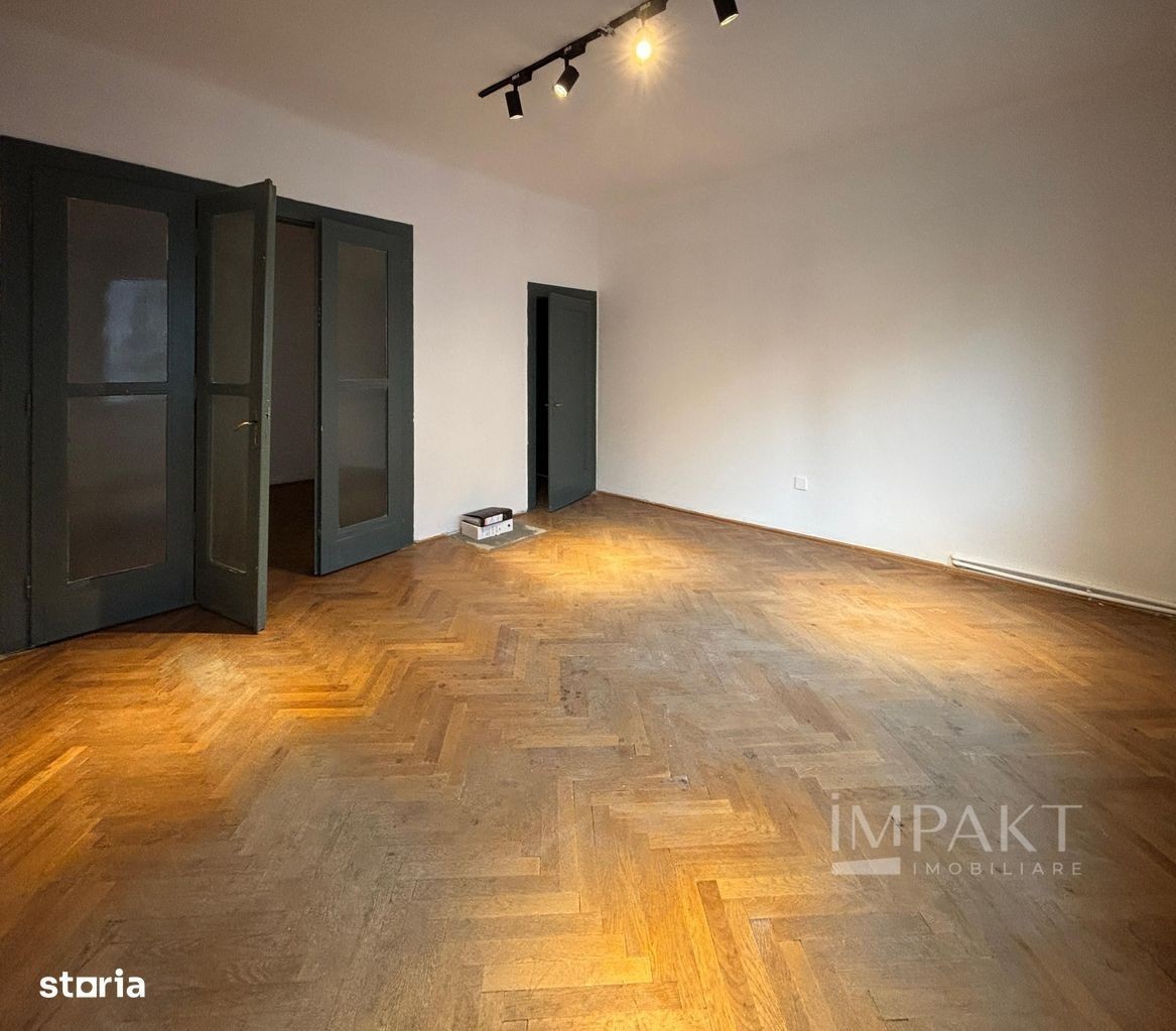 Impakt Imobiliare vă propune spre vânzare un apartament deosebit, situat ultracentral în Cluj-Napoca, ideal pentru activități de birou, firme de consultanță, IT, design, arhitectură sau alte domenii similare. Proprietatea are o suprafață utilă de 115 mp, fiind amplasată la etajul 1 al unei clădiri elegante din zona centrală. Spațiul este apartament în acte, însă nefolosit până în prezent, oferind multiple posibilități de compartimentare și amenajare după bunul plac. Detalii și compartimentare: 4 camere spațioase 5 holuri 2 băi oficiu arhivă balcon logie spre curtea interioară Încăperile sunt generoase, cu înălțime de 3 metri și suprafețe de aproximativ 20 mp, finisate cu parchet din lemn masiv și ferestre mari orientate spre sud, care oferă lumină naturală pe tot parcursul zilei. Spațiul dispune de centrala termică proprie, două toalete, ferestre cu jaluzele exterioare și multiple spații auxiliare care pot fi adaptate pentru: depozitare, arhivă, sală de mese, zonă de relaxare sau întâlniri online. Acest spațiu combină farmecul clădirilor interbelice cu funcționalitatea cerută de birourile moderne, fiind alegerea ideală pentru firme care își doresc o prezență reprezentativă în centrul Clujului. Pentru mai multe detalii sau pentru programarea unei vizionări, vă invităm să ne contactați.