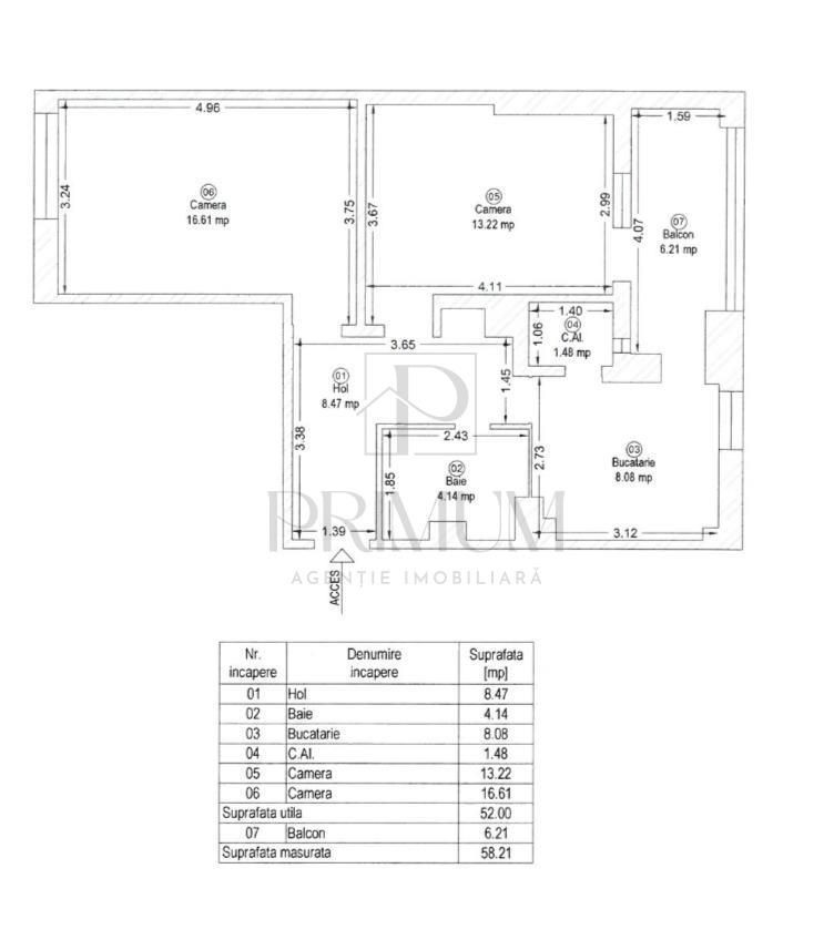 Agentia imobiliara Primum are placerea de a va prezenta spre vanzare un apartament cu 2 camere, decomandat, situat la etajul 4 5 intr-un bloc izolat termic si mansardat, oferind confort si economie la costurile de intretinere. Detalii proprietate: Suprafata utila: 52 mp Balcon: 6 mp, cu acces din sufragerie si bucatarie Etaj: 4 5 Compartimentare: decomandat Incalzire: centrala termica proprie prin calorifere Compartimentare practica: Hol de acces Dormitor Sufragerie cu acces in balcon Bucatarie cu acces in balcon Baie Avantaje si dotari: Bloc izolat si mansardat Apartament luminos, cu posibilitate de customizare dupa preferinte Centrala termica proprie Balcon generos, perfect pentru relaxare sau depozitare Se poate prelua cu chirias, ideal pentru investitie Zona: Pozitionare convenabila, cu acces facil la mijloace de transport, magazine, scoli si alte puncte de interes. Un apartament complet si versatil, potrivit atat pentru locuit, cat si pentru investitie sigura.