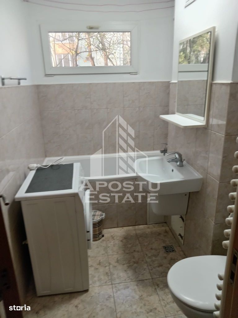 APOSTU ESTATE va propune spre inchiriere un apartament spatios si elegant, cu 2 camere, situat intr-o zona linistita si bine conectata din Timisoara, ideal pentru familii sau persoane care doresc un spatiu generos si confortabil. Suprafata utila: 56 mp Compartimentare eficienta: Hol de acces generos Bucatarie complet mobilata si utilata, cu loc de luat masa Living luminos si spatios Dormitor matrimonial mobilat Baie principala cu cada si geam pentru ventilatie naturala Confort si facilitati: Centrala termica proprie pe gaz Aer conditionat Apartamentul este complet mobilat si utilat Localizare: Zona Take Ionescu - liniste, acces facil spre oras, in apropiere de magazine, scoli si mijloace de transport in comun. Ideal pentru: Cupluri Profesionisti care lucreaza remote sau au nevoie de birou acasa Pret chirie: [360 euro] Programeaza o vizionare! ID intern: CP2817393