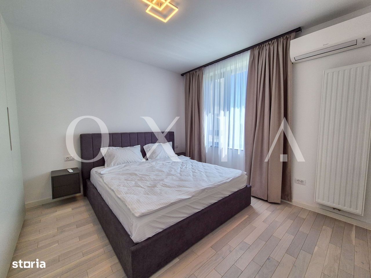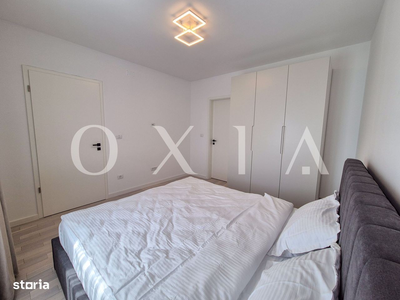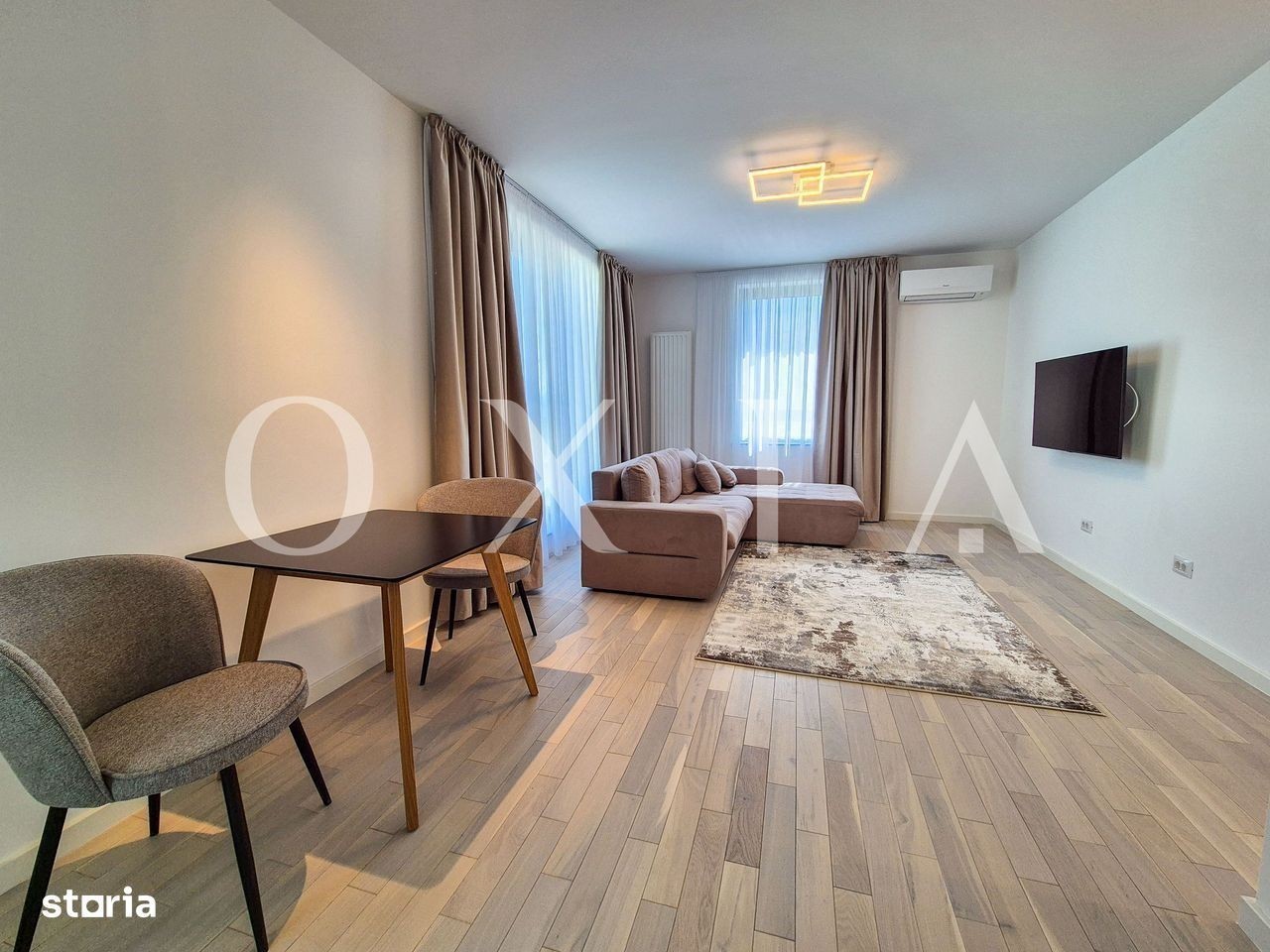 OXIA va prezinta spre inchiriere o proprietate exclusivista aflata la prima inchireire cu 2 camere situat in Dumbravita, acces de pe strada Ferventia. Imobilul este construit in 2025, proprietatea se afla la etajul 1/3, avand o suprafata utila generoasa de 64 mp si o terasa de 6 mp. Compartimentare: * Hol acces * Bucatarie deschisa spre un living generos * Spatiu depozitare * Dormitor cu Baie proprie * Baie de servici * Terasa cu iesire din living Detalii si finisaje: Apartamentul pune accent pe calitate, avand amenajari premium: gresie/faianta de top, ferestre PVC cu geam termopan, usi interioare din MDF, usa de intrare metalica, vopsea lavabila, videointerfon, etc. Confortul termic este garantat de centrala proprie pe gaz incalzire prin calorifere si de sistemul performant de climatizare. Beneficiati de un loc propriu de parcare suprateran. Proprietatea se inchiriaza complet mobilata si utilata conform prezentarii. Pret: 600 EURO + TVA + garantie + comision agentie Pentru a programa o vizionare sau pentru informatii suplimentare, sunati la:
