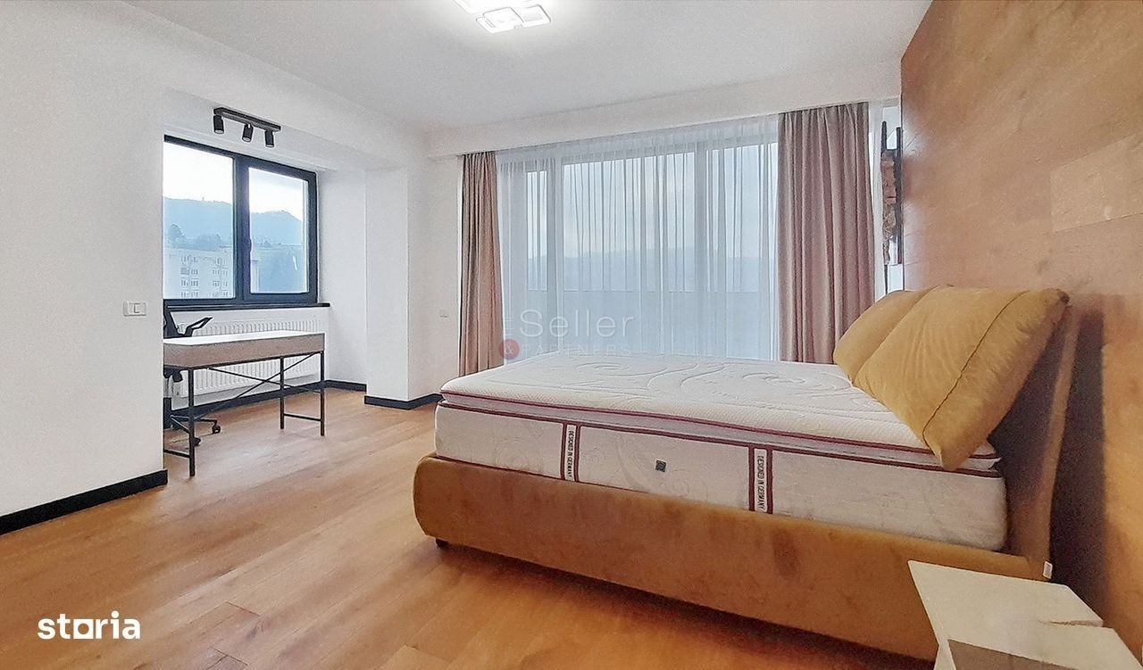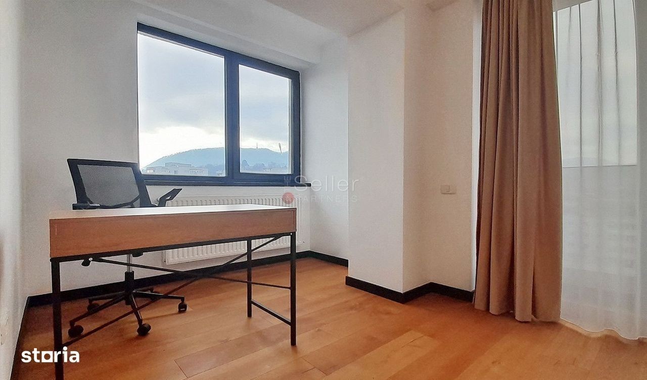 LOCALIZARE: Acest imobil este situat pe Blvd Grivitei. COMPARTIMENTARE: - Zona de zi, care are o suprafata generoasa, detine suprafata vitrata mare, este mobilata si utilata, beneficiind de priveliste spre oras si munte, cu deschidere la terasa; - Bucataria, de tip open space, cu deschidere la terasa, fiind mobilata si dotata; - Dormitorul, spatios cu o suprafata vitrata mare, are inclus o baie complet utilata, si un birou. Acesta este amenajat modern cu mobilier nou si calitativ; - Baile cu aerisire naturala, dotate cu cada si dus. DOTARI: - centrala termica; - tamplarie PVC, cu geam termopan; - usa metalica; - incalzire prin calorifere; - loc de parcare suprateran. Inchirierea proprietatii se va face cu mobilierul aferent prezentei ofertari. Imobilul este situat intr-o zona de blocuri, accesul auto, pana in zona de centru a orasului facandu-se in cca. 8-10 minute. ATRACTII ZONA: Magazine, restaurante, parcuri, scoli, spitale. ACCESIBILITATE: Transport public in apropiere | la aproximativ 5m. NOTA: Perioada Minima Inchiriere Acceptata: 12 luni; Locatorul nu accepta animale de companie. Informatiile prezentate reflecta situatia reala a proprietatii, fara a constitui o oferta contractuala. Aceste date au fost obtinute verbal, de la titularul de drept al imobilului. Structura acestei prezentari nu poate fi reprodusa, fara acordul scris al The Seller and Partners.
