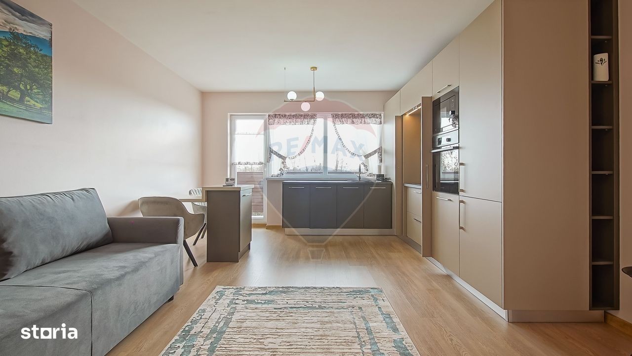 Vă propunem spre închiriere un apartament tip studio, situat la etajul 1 al ansamblului rezidențial Subcetate City 2, pe strada Marin Preda nr. 1, în Sânpetru. Proprietatea se află la prima închiriere și se remarcă prin design elegant, spații luminoase și finisaje de calitate superioară. Compartimentare modernă și funcțională: - Zonă de living cu bucătărie open-space, amenajată atent pentru confort și eficiență; - Bucătărie complet utilată, dotată inclusiv cu mașină de spălat vase; - Spațiu de dormit bine delimitat, mobilat integral; - Baie modernă, echipată complet; - Două balcoane, ideale pentru relaxare sau spațiu suplimentar. Apartamentul beneficiază de încălzire în pardoseală, oferind confort ridicat indiferent de sezon. Se închiriază complet mobilat și utilat, totul nou, pregătit pentru mutare imediată. Loc de parcare privat, inclus în preț, asigurând confort și acces facil la proprietate. Localizare: Subcetate City 2 este un ansamblu rezidențial liniștit, modern, cu acces rapid către Brașov, zone comerciale și principalele puncte de interes ale zonei. O proprietate modernă, complet echipată, perfectă pentru cei care caută confort, eleganță și liniște într-un ansamblu nou. Comisionul agenției: 0% pentru viitorul chiriaș. Pentru mai multe detalii sau pentru a programa o vizionare, vă stăm la dispoziție: Andrei Mocanu -