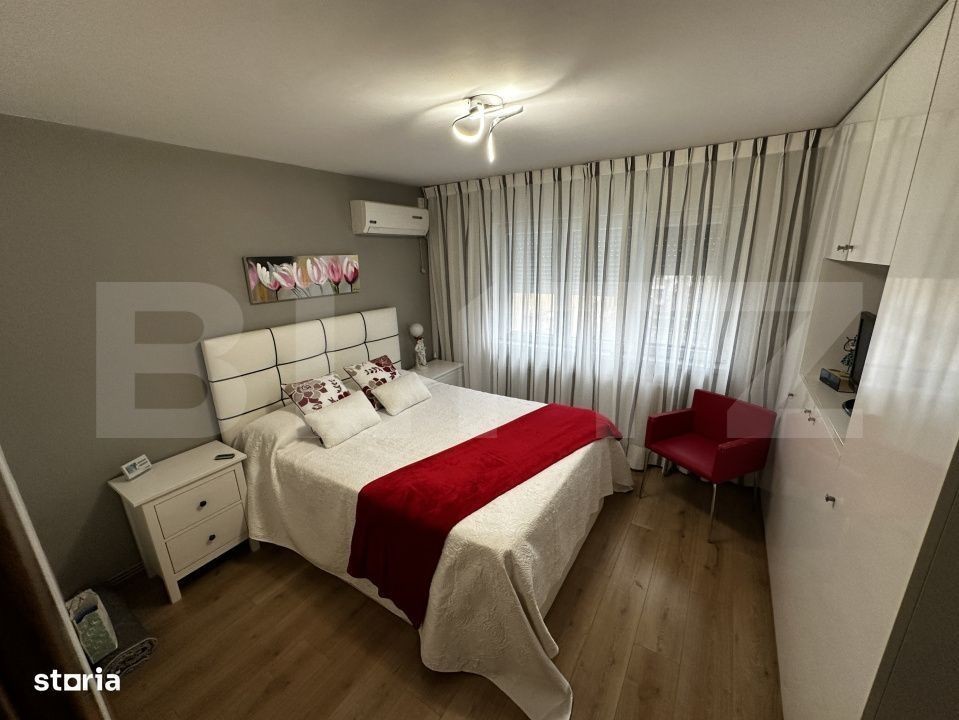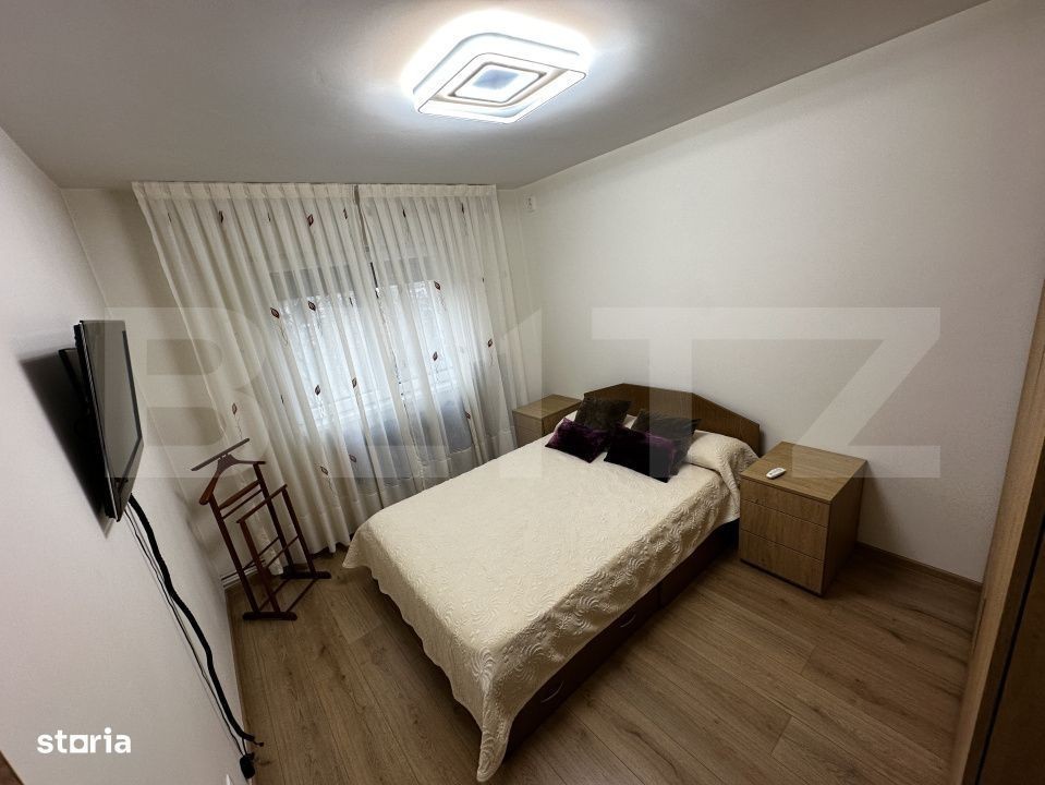 Blitz va propune spre vanzare un apartament decomandat cu 3 camere, situat la etajul 3 al unui imobil cu 4 niveluri, în zona 1 Mai, foarte aproape de Școala 36. Apartamentul a fost renovat complet, cu instalațiile electrică și sanitară schimbate integral, și se vinde mobilat, astfel încât te poți muta imediat, fără griji suplimentare. Spațiul este bine compartimentat, cu 2 băi - una dintre ele având geam pentru aerisire naturală - și camere luminoase. Bucătăria a fost extinsă pe balcon, ceea ce oferă o zonă de lucru mai generoasă și mai practică, iar amenajarea este modernă și funcțională. În plus, apartamentul este dotat cu cuptor pe gaz, centrală proprie și aer condiționat, pentru confort în orice sezon. Scara blocului a fost recent renovata. Locuința dispune de spații de depozitare bine organizate, utile pentru o familie, iar extinderea bucătăriei creează o senzație de deschidere și eficiență în utilizarea spațiului. Zona este liniștită, cu acces rapid la școli, magazine și mijloace de transport. O locuință primitoare, modernă și gata pentru mutare, ideală pentru cei care caută confort și funcționalitate într-o zonă accesibilă.