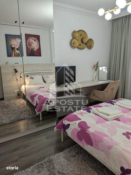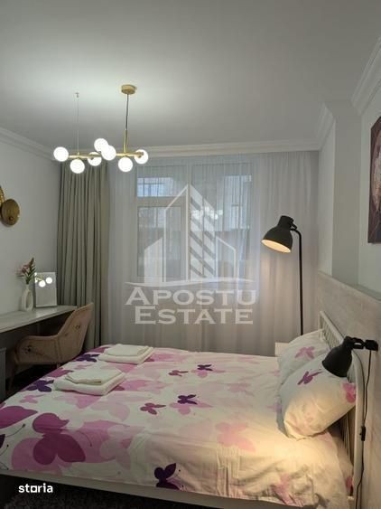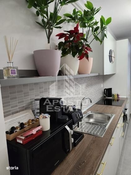 Apostu Estate propune spre inchiriere un apartament modern cu 2 camere, complet mobilat si utilat, situat in complexul rezidential City of Mara, la doar 1 km de centrul Timisoarei si 1.5 km de Iulius Town. Locatie premium, ideala pentru persoane care doresc confort, siguranta si acces rapid catre zonele de interes. Apartamentul dispune de o suprafata de 55 mp utili, avand urmatoarea compartimentare: - Dormitor cu pat matrimonial (queen size) si spatiu de depozitare - Living cu canapea extensibila, TV, aer conditionat si spatiu de depozitare - Bucatarie separata, complet utilata (plita, hota, cuptor, cuptor cu microunde, frigider mare cu congelator, masina de spalat vase, aparate cafea - capsule si french press, prajitor de paine, fierbator, vesela si ustensile) - Baie cu cada, masina de spalat rufe si uscator de rufe - Situat la parter Vecinatati / Puncte de interes - Centrul Timisoarei - 1 km - Iulius Town - 1.5 km - Lidl - 2 minute - GymOne - 2 minute - Parc pentru copii in apropiere - Acces facil catre mijloace de transport si zone centrale Dotari si beneficii - Centrala termica proprie - Loc de parcare privat inclus in pret - Complex rezidential nou, modern si bine administrat - Mobilat complet si utilat integral Conditii de inchiriere - Diponibil imediat - Garantie: 600 euro - Contract declarat la ANAF - Perioada minima: 12 luni - Apartament pentru nefumatori - Fara animale de companie Va asteptam cu drag la o vizionare!
