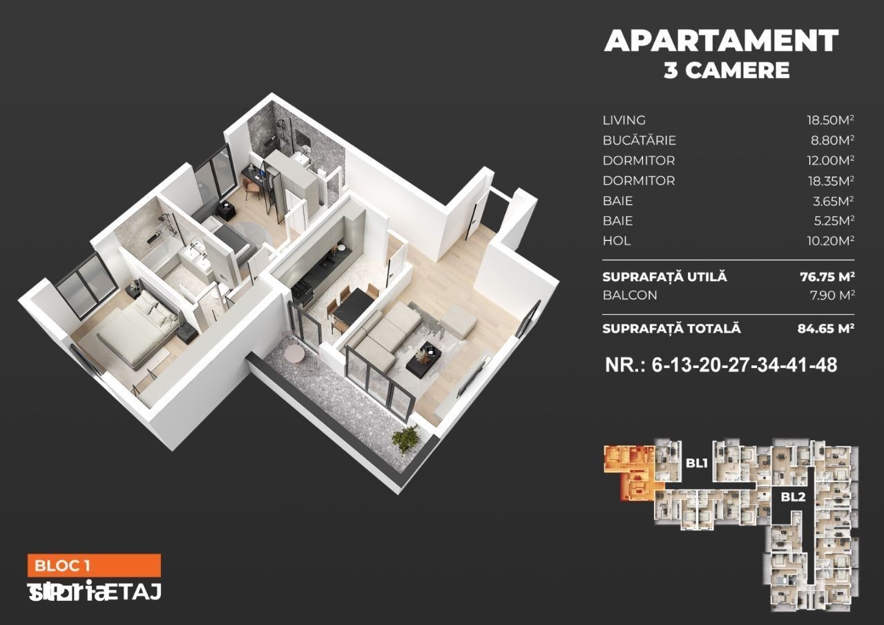 Vand apartament cu 3 camere, decomandat, intr-un imobil nou ce are ca termen de finalizare luna Martie 2026. Dispune de o suprafata utila totala de aproximativ 85 mp. Dotari : - Centrala termica proprie; - Incalzire in pardoseala, suplimentata cu radiator portprosop in baie; - Gresie, faianta, parchet, usi interioare la alegere. - Kit pregatire AC. Se pot achizitiona si locuri de parcare : 10.000 euro supraterane sau 14.000 euro subterane. Ansamblul se afla langa Pasarela Pietaonala Berceni. Pret 130.000 EURO + tva Avans minim 25.000 euro. Pentru mai multe detalii despre oferta prezentata ma puteti contacta la