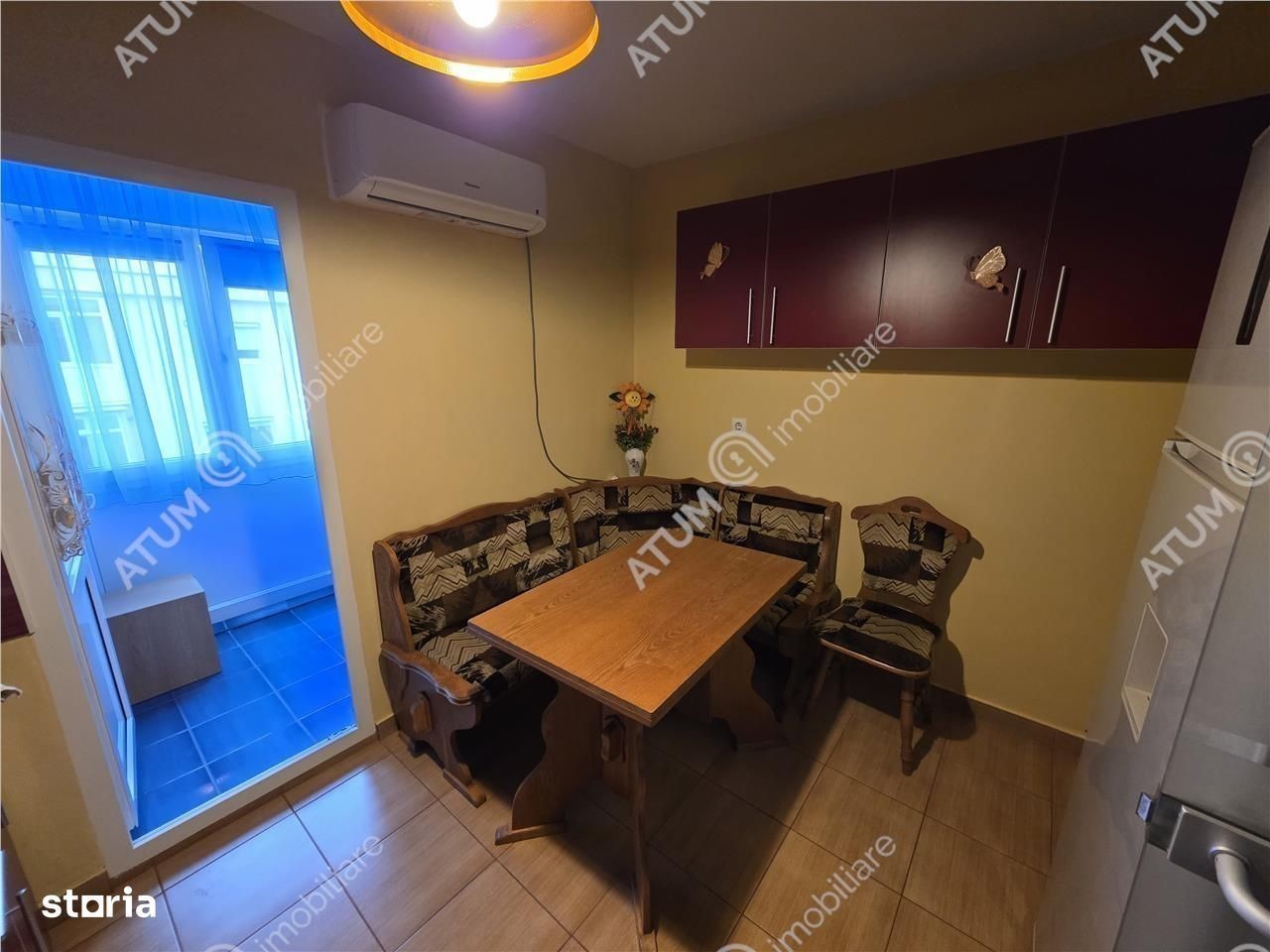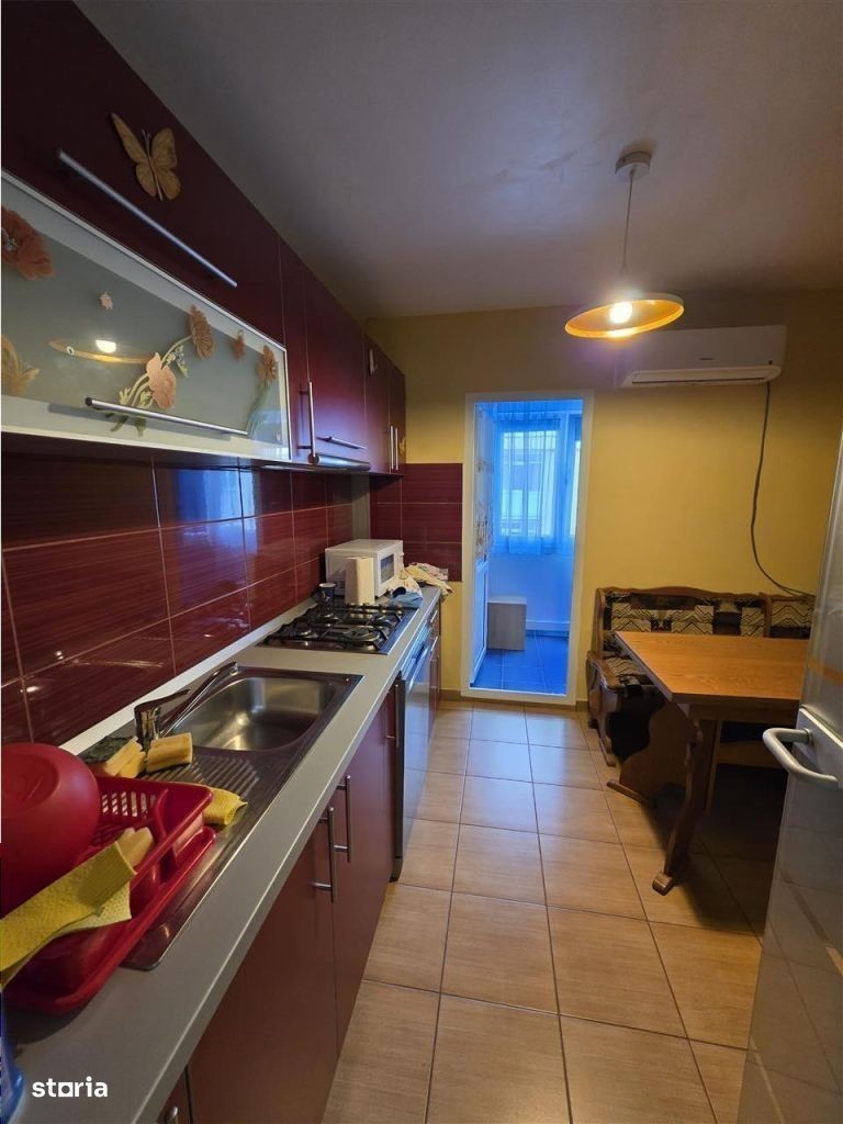 Va oferim spre inchiriere un apartament de 2 camere decomandate, orientat catre SUD, amplasat intr-un imobil din zona Vasile Aaron din Sibiu. Apartamentul are suprafata utila de 53 mp si este compus din living de 19 mp, dormitor 13 mp, hol la intrare de 5 mp, bucatarie inchisa de 11,5 mp, baie 4.5 mp. Separat mai detine un balcon de 8 mp inchis cu tamplarie PVC. Proprietatea detine dotari precum: centrala proprie pe gaz, instalatie termica din cupru, calorifere, parchet laminat, gresie, faianta, usi interioare din lemn, usa de acces din metal, izolatie din polistiren la exterior, tamplarie PVC si geamuri termopane. Locuinta se preda viitorilor chiriasi mobilata si utilata astfel: in holul de la intrare este montat un cuier si pantofar, living detine un coltar extensibil, birou si mobilier din lemn masiv, domitor mobilat complet (dresing, pat matrimonial 140x200cm, aer conditionat), bucatarie separata mobilata si echipata cu aer conditionat, frigider, masina de spalat vase, cuptor cu microunde, plita pe gaz, baie dotata cu cada, obiecte sanitare si masina de spalat rufe. Proprietatea este localizata intr-o zona placuta, cu acces facil catre centre comerciale, mijloace de transport, scoli, gradinite si iesirea spre autostrada. Valoarea de inchiriere este de 400 euro luna + garantie. ID intern: 3086.