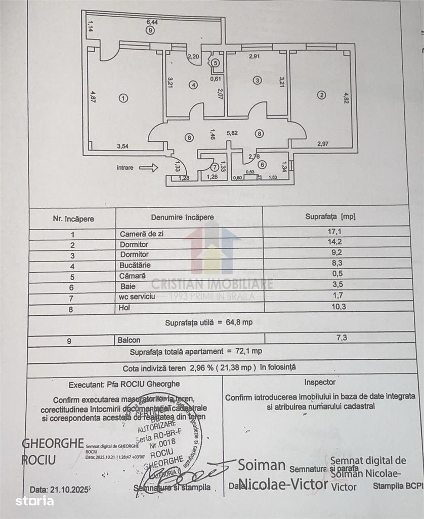 NEGOCIABIL Apartament 3 camere confort 1 decomandat, etaj 2 * Radu Negru - Capatul lui 4 * Tamplarie interioara si exterioara lemn * Balcon 7 m inchis in cornier * 2 grupuri sanitare * Posibilitate personalizare * Acte la zi! Disponibil Imediat! Cristian Imobiliare - din 1993 Primii in Braila CRS7990 &11