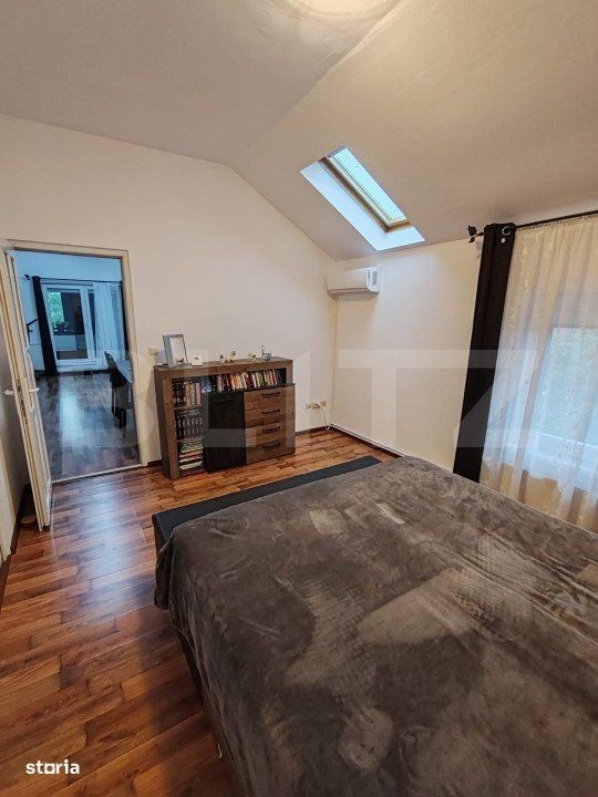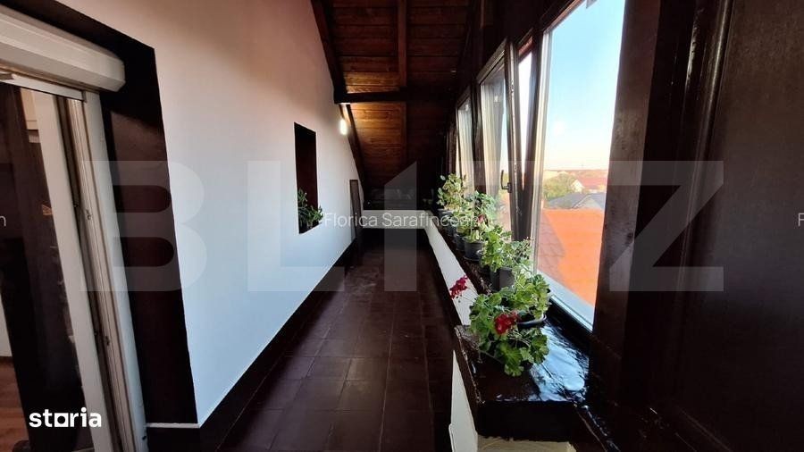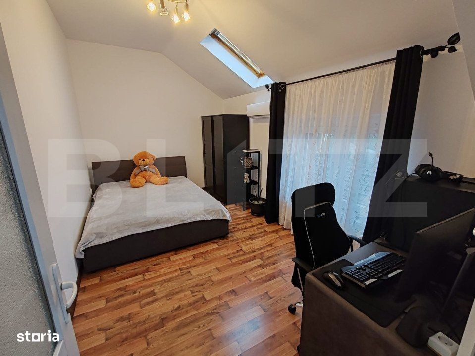 Blitz are placearea de a va oferi spre vanzare un apartament superb de tip penthouse de 121 mp utili cu 3 camere structurat astfel : 2 dormitoare, dressing, o baie cu vana si 2 geamuri pentru aerisire, o bucatarie open space cu living extrem de generos, terasa inchisa complet in geamuri de termopan si pod pentru depozitare. Este situat la etajul 2 din 2 cu un singur vecin pe scara. Apartamentul a fost construit in 2009, are zid de caramida de 35 cm si izolat de polistiren de 10 cm (clasa energetica A) are vedere pe trei parti si dispune de toate utilitatile: apa, gaz, curent (inclusiv trifazic), internet prin fibra optica, incalzire cu centrala pe gaz In zona exista transport in comun, Profi, Lidl, 5 minute cu masina pana la Shopping City/Carrefour/Dedeman, 8 minute cu masina pana in centru in zona foarte linistita ( zona de case ). Dotari: aer conditionat ( in fiecare camera ), aragaz, frigider, hota, cuptor cu microunde, masina de spalat ( achizitionate noi ). Apartamentul se vinde utilat si mobilat complet ( cu mobila facuta pe comanda ), la cheie. Imobilul este foatre primitor, luminat natural prin ferestre Velux prevazute cu blind-uri, iar spatiul generos te face sa te simti acasa. Va asteptam cu drag la vizionare!