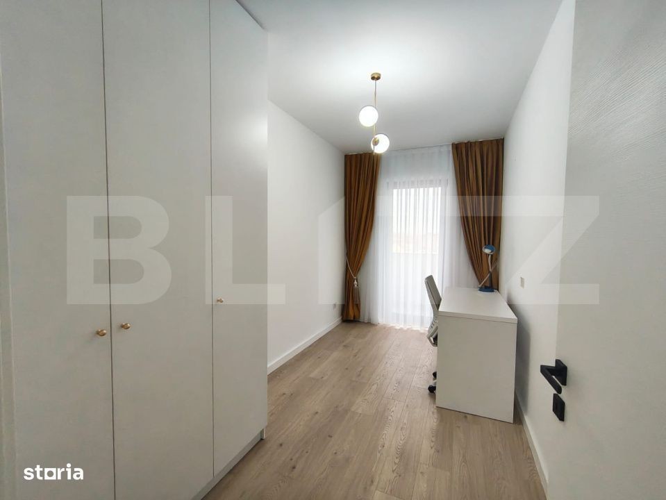 Blitz va prezinta un apartament cu 3 camere, prima cheie, amenajat modern, cu bun gust, situat intr-un imobil nou, intr-o zona linistita si accesibila. Locuinta are o suprafata utila de 68 mp utili, la care se adauga un balcon mare de 8 mp, ideal pentru relaxare. Apartamentul este compartimentat astfel: -living spatios cu bucatarie open space, luminos si aerisit -1 dormitor matrimonial, confortabil -1 camera birou, perfecta pentru lucru, studiu sau spatiu multifunctional -baie cu vana, amenajata cu atentie la detalii -hol cu spatiu de depozitare. Un mare avantaj al acestui apartament este parcarea subterana in buncar, o optiune premium, sigura si usor accesibila, care ofera confort si exclusivitate. Fiind prima cheie, apartamentul permite si personalizare, in functie de preferintele viitorului chirias sau proprietar - daca se mai doresc dotari sau imbunatatiri suplimentare, se poate discuta.