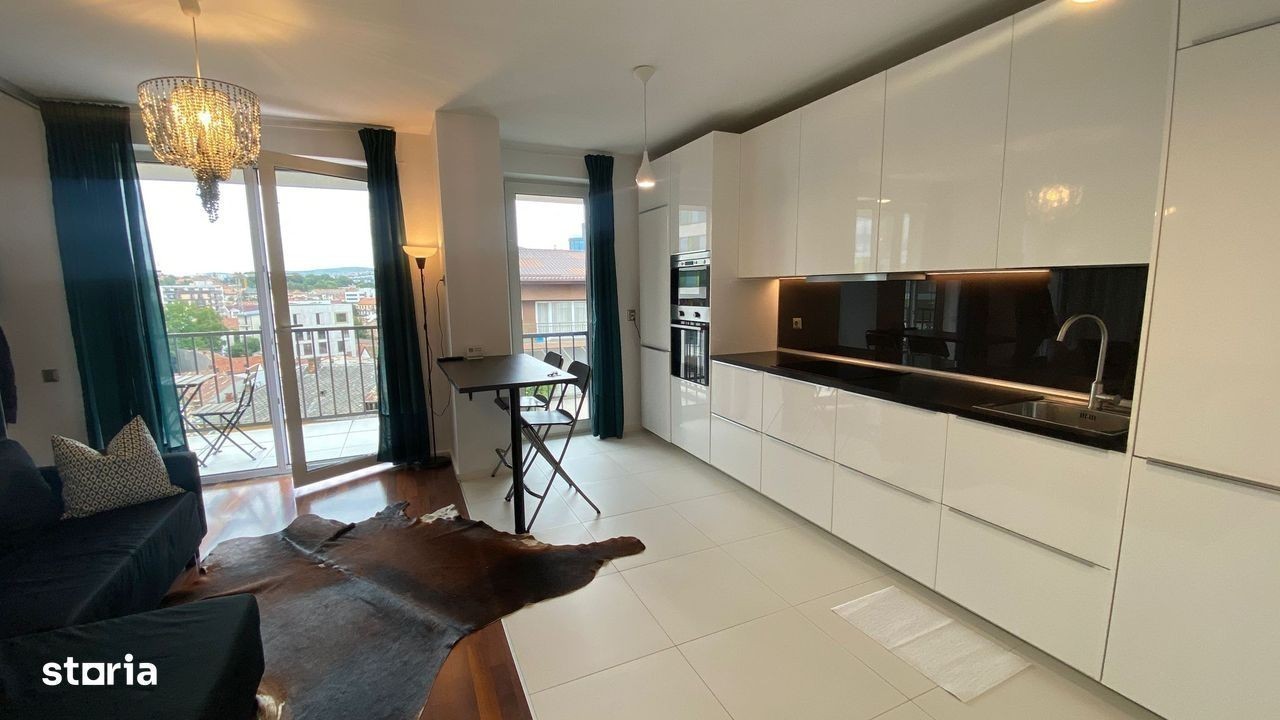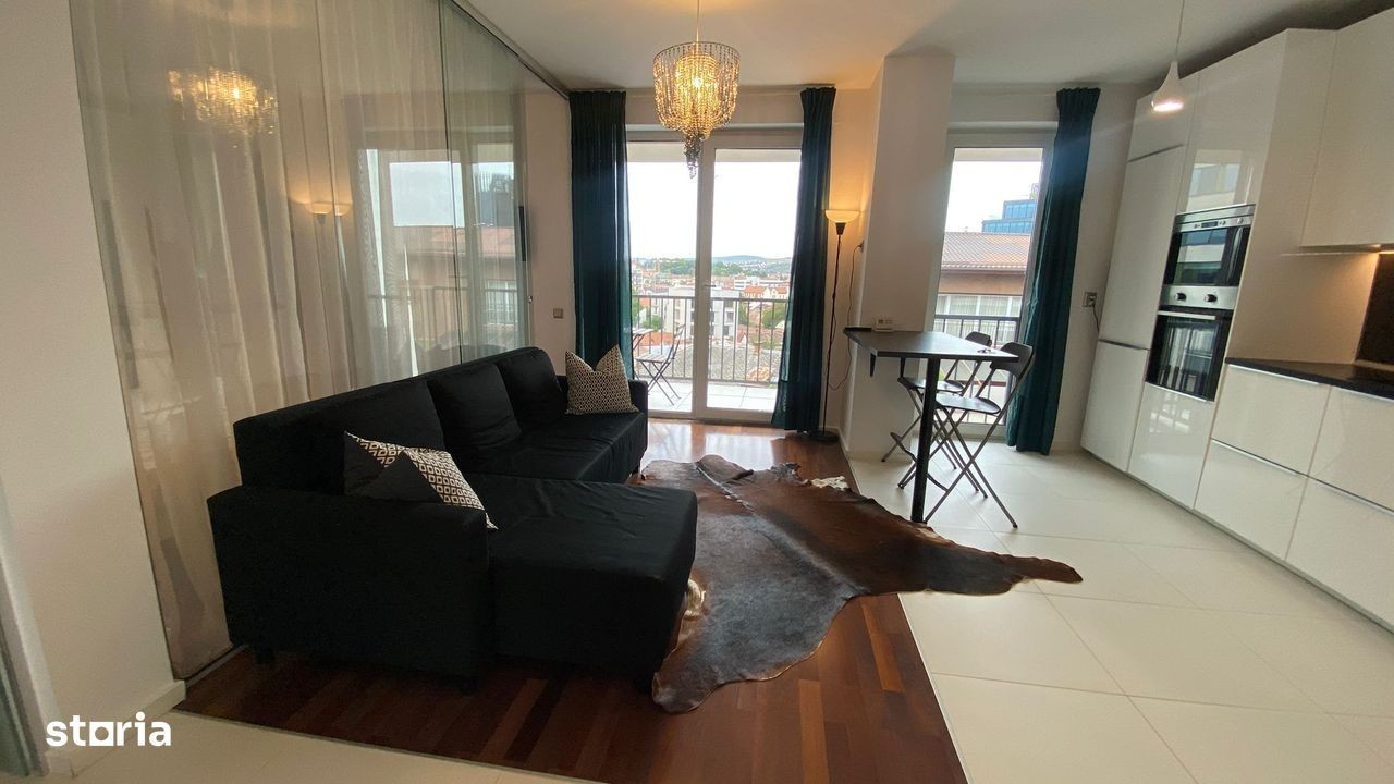 EDIL Imobiliare vă oferă spre închiriere un apartament modern, ideal pentru un cuplu sau pentru o persoană singură, situat într-un bloc nou, în zona centrală a orașului, în imediata apropiere a sediului NTT DATA. Această locuință cu 2 camere semidecomandate se află la etajul 6 din 6, într-o clădire prevăzută cu lift, asigurând astfel un confort sporit și acces facil. Apartamentul are o suprafață de 47 mp și este compartimentat eficient, oferind un ambient aerisit și luminos. Interiorul este compus dintr-un living generos, un dormitor intim, o baie modernă, precum și un balcon care adaugă un plus de relaxare și perspectivă asupra orașului. Finisajele sunt de o calitate superioară, alese cu mult bun gust și atenție la detalii, reflectând un stil contemporan elegant și rafinat. Întregul spațiu este amenajat cu grijă, astfel încât să ofere un echilibru perfect între funcționalitate și estetică. Fiecare colț al apartamentului inspiră confort și liniște, fiind gândit pentru a satisface nevoile celor care apreciază atât designul modern, cât și poziționarea excelentă în oraș.Locuința este perfectă pentru cei care doresc să trăiască în inima orașului, având acces rapid la facilități urbane, mijloace de transport, restaurante, cafenele și spații de birouri. O oportunitate rară de a locui într-un apartament nou, elegant și bine poziționat. Daca va place aceasta oferta sau pentru alte oferte nu ezitati sa ne contactati telefonic sau la sediul nostru EDIL, Str. Iuliu Maniu, Nr. 13, Ap. 6, Cluj-Napoca. APCJ354531