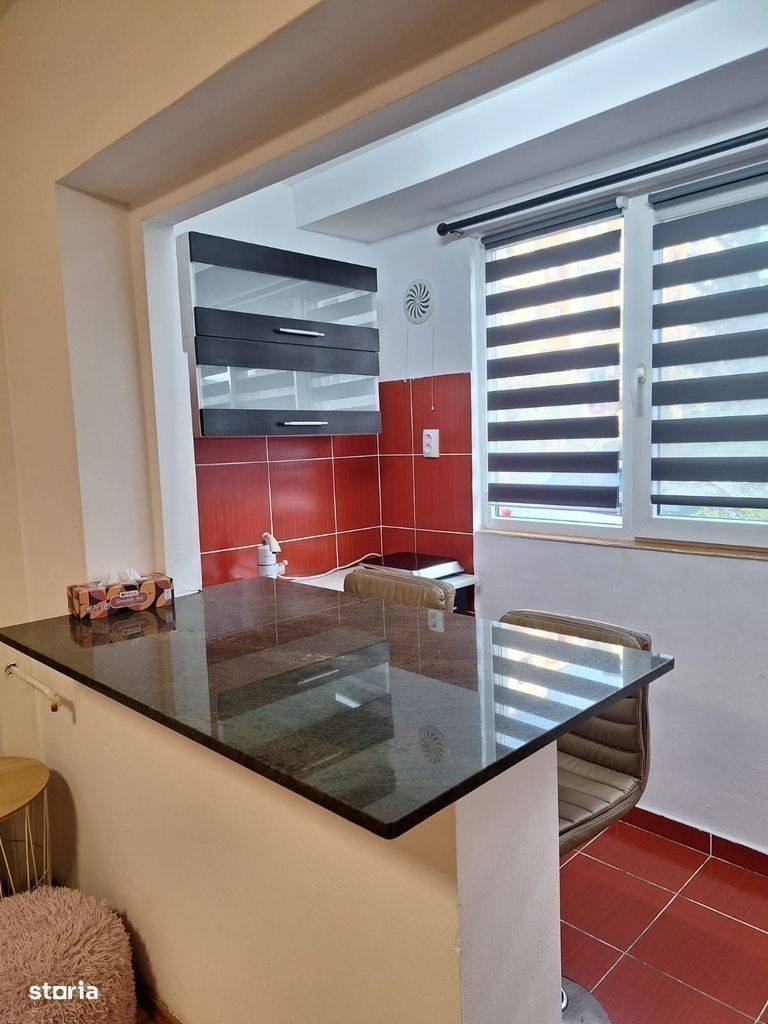O nouă ofertă pentru dumneavoastră: o garsonieră de închiriat în Cluj-Napoca, cartierul Mărăști, situată la parterul unui imobil cu 4 etaje, în apropiere de Mega Image Shop & Go, strada Scorțarilor, stații de autobuz, Lidl și zona de business The Office. Apartamentul are o suprafață de 22 mp, este de confort 2 și include o baie, finisaje moderne (gresie, faianță, parchet laminat), încălzire electrică prin convectoare și un boiler pentru apă caldă, precum și un loc de parcare. Garsoniera este complet mobilată și utilată cu electrocasnice moderne, inclusiv TV, frigider, mașină de spălat și interfon. Bucătăria este compactă, modernă și organizată eficient. Dispune de un blat tip bar cu suprafață din piatră lustruită, care servește atât ca zonă de luat masa, cât și ca spațiu de lucru, fiind însoțit de două scaune tip bar tapițate pentru un confort sporit. Dacă vă place această ofertă sau doriți să vedeți altele, nu ezitați să ne contactați telefonic sau la sediul nostru EDIL, str. Iuliu Maniu nr. 13, ap. 6, Cluj-Napoca GACJ355657