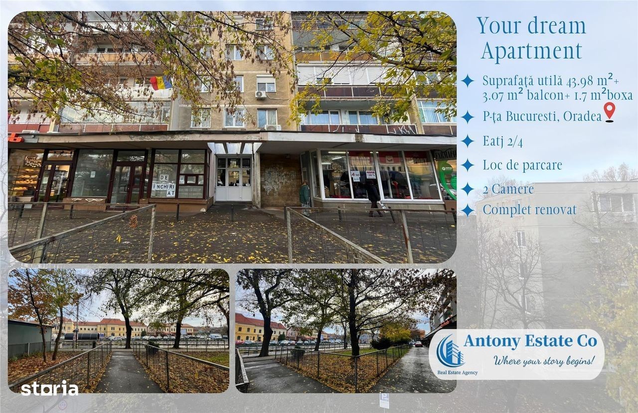 Vă propunem spre vânzare un apartament cu 2 camere - open space, Etajul 2 din 4, tip D, complet mobilat și utilat, situat in zona P-ta Bucuresti (zona Garii) - Oradea. Imobilul se află într-un bloc de apartamente cu 4 etaje, fiind situat la etajul 2 acestuia. Deține o suprafață totală de 57.17 m² construiți, din care. Locuința este compusă astfel: - 1 Living Room; - 1 Dormitor matrimonial; - 1 Dormitor tineret; - 1 Bucătărie; - 1 Balcon inchis; - 1 Vestibul; - 1 Beci la subsol de 1.7 m². În apropierea acestui imobil se găsesc: loc de joacă pentru copii, stații de autobuz și tramvai, Grădinițe, Școli, Restaurante, Hoteluri, acces facil spre centrul orașului. Scara blocului este dotată cu interfon. Confortul termic al apartamentului este realizat de la rețeaua edilitară de termoficare, astfel costurile cu întreținerea sunt mici. Imobilul dispune de un Informațiile tehnice au caracter orientativ, acestea fiind preluate de la proprietar. Pentru mai multe detalii și vizionări, ne puteți contacta telefonic la numărul din anunț. - Consultanță financiară și juridică; - Consultanță și asistență în obținerea creditelor ipotecar-imobiliare; - Echipă de meseriași (zugrav, instalator, electrician), totul sub contract legal și la termen. - Design interior, asigurări și evaluări proprietăți. -