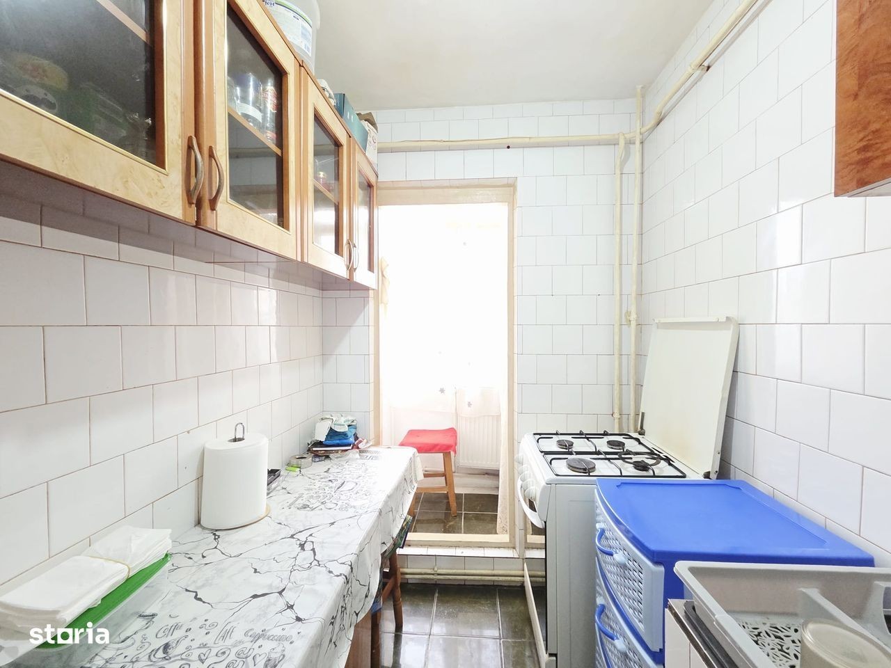 De vanzare apartament cu 2 camere semidecomandate situat in Galati, cartier Micro 40. Pozitionat in imediata apropiere si a mijloacelor de transport in comun, imobilul a fost renovat si beneficiaza de centrala proprie. De asemenea apartamentul a fost izolat exterior. Tamplaria exterioara a fost schimbata, usile interioare sunt din lemn. Locuinta beneficiaza de balcon la dormitor, geam la baie iar suprafata totala utila este de 37 mp. Se vinde mobilat si utilat, asa cum este prezentat in fotografii.