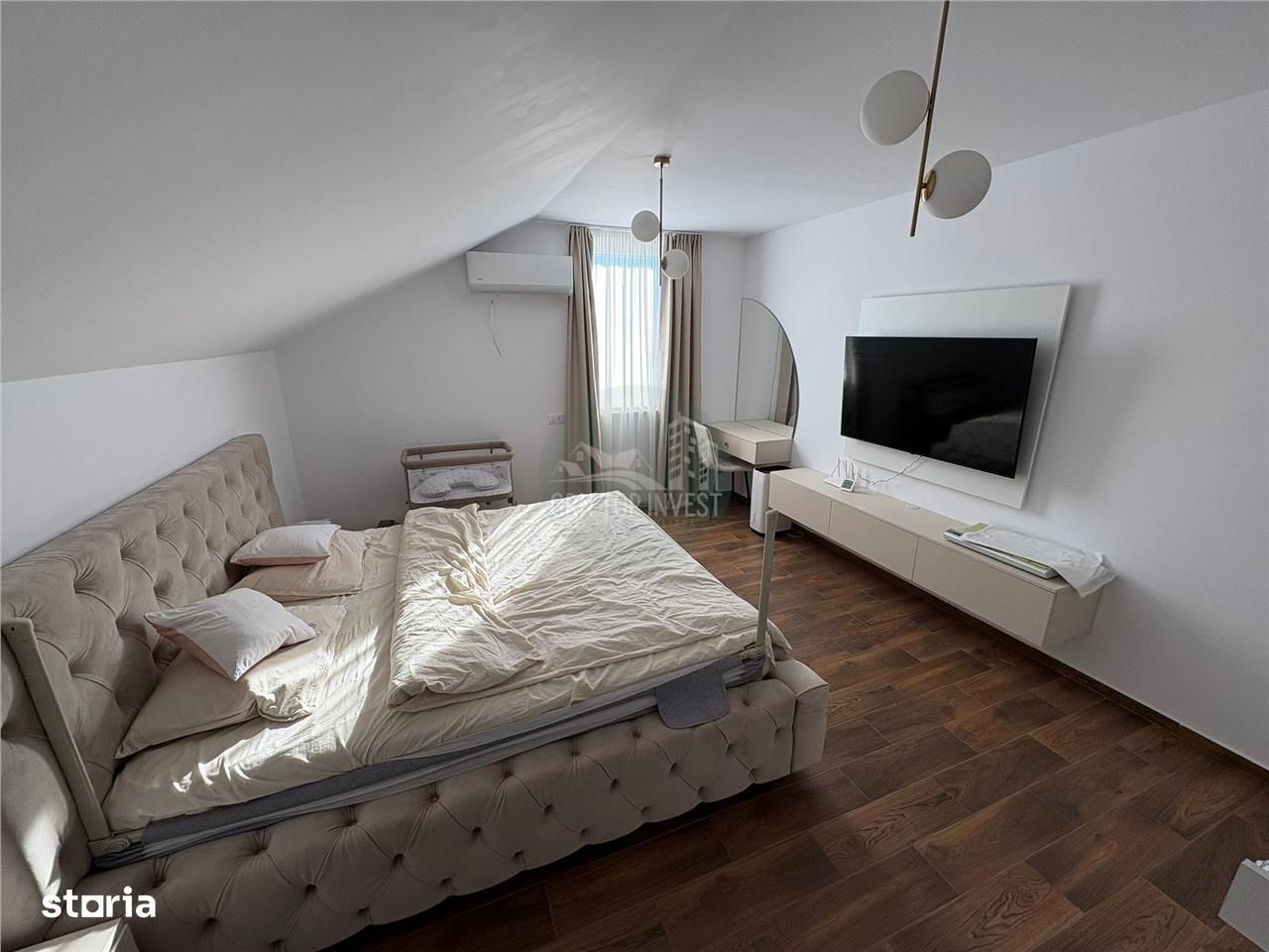 Agenția imobiliară GRN TOP INVEST vă oferă spre vânzare un cvadruplex modern cu 5 camere, ideal pentru o familie care își dorește confort, spațiu și finisaje de calitate. Proprietatea este compartimentată eficient, astfel: Parter: living generos cu bucătărie open-space și baie. Etaj 1: două dormitoare, dressing și baie spațioasă. Mansardă: dormitor matrimonial de mari dimensiuni și spațiu suplimentar pentru depozitare, placat cu dublu OSB de 22 mm. La exterior, imobilul dispune de o curte privată de 220 mp, parțial pavată, cu terasă accesibilă direct din living, perfectă pentru relaxare. Casa se vinde complet mobilată și utilată, fiecare cameră fiind mobilată la comandă, inclusiv dressingul și camera tehnică. Dotările includ: •Plită, hotă, cuptor, frigider și mașină de spălat - Haier •Mașină de spălat vase - Whirlpool •Două televizoare LG (139 cm și 164 cm) •Uscător de rufe - Heinner •Pompă de căldură Leader 10 kW cu încălzire în pardoseală Toate instalațiile funcționează exclusiv pe energie electrică, oferind eficiență și confort termic sporit. Pretul acestei locuinte este de 229.000 EURO, negociabil Pentru mai multe detalii sau pentru programarea unei vizionări, nu ezitați să ne contactați.