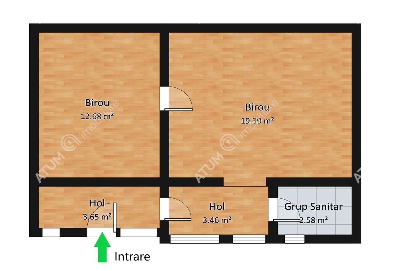 Va oferim spre inchiriere un spatiu pretabil pentru birouri situat in zona Bulevardul Victoriei din Sibiu. Spatiul se afla la etajul 1 al unui imobil, are suprafata utila de 43 mp si este compus din 2 camere de 12,68 mp, respectiv 19,07 mp, un hol de acces de 4,10 mp, grup sanitar de 2,58 mp si un spatiu de depozitare de 2.51 mp. Proprietatea a beneficiat de renovare completa in anul 2020, iar ca modificari aduse sunt: centrala termica, calorifere, usi interioare, parchet din lemn masiv, instalatii electrice si termice, tamplarie PVC cu geam termopan, usa de acces din PVC, baie dotata cu obiecte sanitare si cabina de dus. De asemenea, spatiul detine contorizare separata. Imobilul in care se afla spatiul are regimul de inaltime D+P+1 Etaj, este izolat termic la exterior si are acoperis tip sarpanta si invelitoare din tigla. Zona in care este situat imobilul, se afla intr-un centru vital al orasului, cu acces usor la institutii publice si alte puncte de interes. Valoarea de inchiriere este de 350 euro luna + garantie. ID intern: 3092