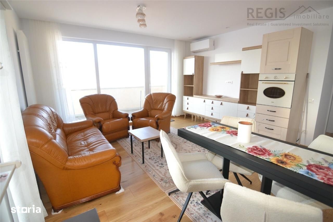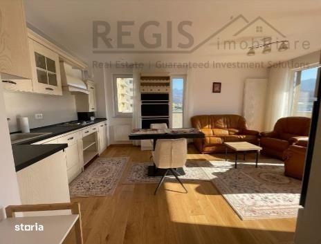 ID:6258 REGIS Imobiliare va propune spre inchiriere apartament cu 2 camere, tip studio. Detali: ~Suprafata utila:57mp ~Suprafata totala:77mp ~2 camere ~Etajul:4 8 ~Centrala propie ~Loc de parcare inclus in pret Compartimentare: ~open space ~Living spatios dotat cu bucatarie mobilata si utilata, dormitor luminos, hol baie si terasa mare. Complet utilat cu: ~Aragaz, hota, frigider, masina de spalat rufe,TV Detalii imobil: ~An constructie 2020 ~An renovare:2024 ~Izolat interior si exterior Zona: ~Modernă și bine cotată din Brașov, apreciată pentru accesul rapid la puncte de interes precum supermarketuri, farmacii, școli, grădinițe și zone de recreere. ~Ansamblul rezidențial oferă un nivel ridicat de confort, cu spații curate, locuri de parcare și acces facil la mijloacele de transport public. ~Zona este ideală pentru familii, tineri profesioniști sau cupluri care își doresc un stil de viață urban, modern și bine conectat. Comisionul agentiei este de 50%+TVA dintr-o chirie la semnarea contractului. Garanție: echivalentul unei chirii lunare. Va asteptam cu drag la vizionare. Agent imobiliar - Narcisa