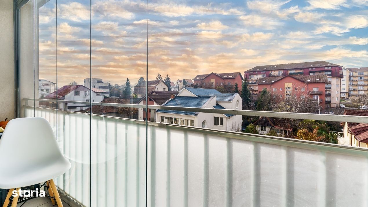 Apartament modern și primitor, gata sa devina "acasa" pentru tine! Va propunem spre achizitie un apartament de 3 camere, situat intr-o zona excelenta, la intersectia cartierului Gheorgheni cu Buna Ziua si Andrei Muresanu, pe strada Alverna. Accesul catre centru e facil chiar si mergand pe jos, intr-un interval de 20 de minute. Transportul public este ușor accesibil, ceea ce face deplasarea rapidă și comodă inspre oricare cartier, iar școlile și serviciile esențiale sunt la doar câteva minute distanță. Magazine, cafenele, parcuri, toate sunt la indemana pentru a-ti oferi un stil de viata confortabil. Apartamentul este amenajat în tonuri calde, asigurand o atmosfera primitoare. Livingul e luminos, datorită ferestrelor mari, iar bucătăria și diningul se integrează armonios în spațiu, fiind complet echipate și optim organizate. Holul de intrare este spatios, camerele bine proportionate, iar cele doua bai sporesc gradul de confort al apartamentului. Apartamentul este dotat cu centrală termică proprie achizitionată în 2021 (în garanție), aer condiționat, iar balconul, de tip logie, este securizat cu panouri de sticla, mobile, care nu obstructioneaza lumina naturala din incapere. In balcon regasim si o mica camara, foarte utila pentru bucatarie. Finisajele de calitate, detaliile minimaliste și compartimentarea echilibrata, fac din acest apartament un cămin ideal pentru familie! Se poate achiztiona impreuna cu o parcare exterioara, a carei pret este 12.000 euro. Va asteptam sa descoperiti si alte detalii ale acestui minunat apartament, la o vizionare!