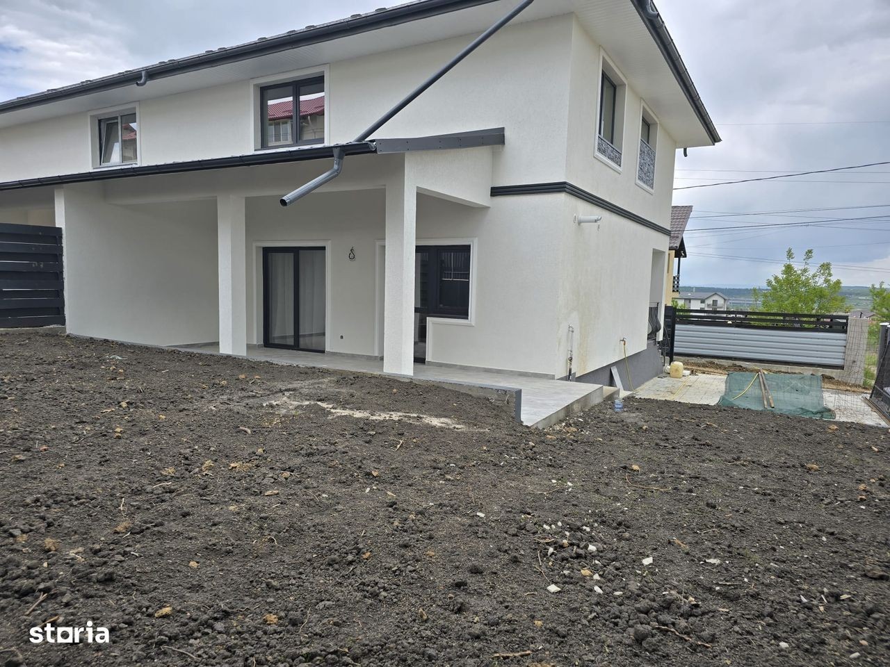 Va prezentam spre vanzare casa tip duplex P+1E ce ofera confortul si intimitatea unei case de tip single prin atentia acordata inca de la nivelul proiectarii, cu 4 camere, magazie, dresiing si o suprafata de 110 mp, 2 bai, terasa si balcon, amplasata pe un teren plan de 500 mp, cate 250 mp aferent fiecarei proprietati, situata intr-o zona linistita si accesibila.