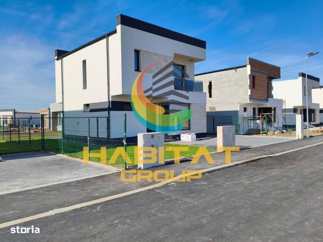 Complex cu utilități și infrastructură completă. Apă, gaze, electricitate, drumuri asfaltate, stație STV, iluminat public, supraveghere video și parc privat. Vilă 4 camere, modernă și bine compartimentată. Locuința include: • 3 băi • living + bucătărie open-space • 3 dormitoare • terasă de 19 mp • 2 parcări Finisaje premium: încălzire în pardoseală, tâmplărie tripan, pregătire pentru panouri solare/pompă de căldură, curte amenajată cu gazon și aspersoare. Preț: 174.000 € (TVA inclus) Rate la dezvoltator | Avans minim: 50.000 € Pentru informații suplimentare și vizionări, vă stau la dispoziție