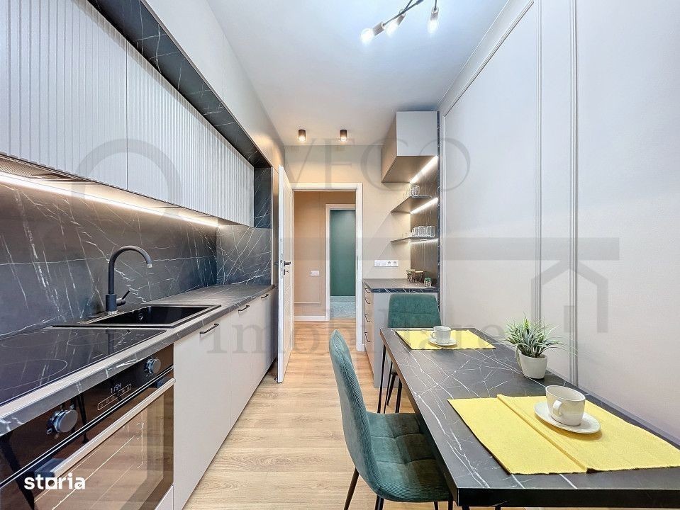 Apartament cu 2 camere în imobil nou, a doua închiriere, complet mobilat și utilat, încălzire în pardoseală, două aparate aer condiționat, terasă generoasă, loc de parcare în garajul subteran, zona Gheorgheni - Soporului - Mon Jardin Residence. VEGO IMOBILIARE vă prezintă spre închiriere și vă stă la dispoziție cu acest apartament de 2 camere, semidecomandat, poziționat la etajul 4 al unui imobil recent finalizat, situat în cartierul Gheorgheni, zona străzii Soporului, în incinta ansamblului rezidențial Mon Jardin. Știind că locația reprezintă unul dintre cele mai importante criterii în ceea ce privește alegerea unei locuințe, poziționarea acestui imobil oferă acces facil spre zona centrală a orașului, mijloacele de transport în comun sunt la o distanță de câteva minute, Baza Sportivă Gheorgheni, magazine Mega Image, Profi, Kaufland, Lidl, Jysk, centrul comercial Iulius Mall, farmacii, bănci, parcuri, spații verzi și multe alte puncte de interes din apropiere. Locuința se desfășoară pe o suprafață utilă generoasă, de 56 mp + o terasă de 26 mp, se închiriază complet finisată, mobilată și utilată modern, inclusiv cu mașină de spălat vase, iar în rândul dotărilor menționăm pardoseală cu parchet laminat, uși interioare din lemn, ferestrele termoizolante cu tâmplărie PVC și ușă metalică la intrare, iar confortul termic este asigurat pe tot parcursul anului de centrala termică a imobilului cu sistem de încălzire în pardoseală și cele două aparate de aer condiționat. Compartimentarea este decomandată, astfel: - 1 cameră de zi, 1 dormitor, 1 bucătărie închisă, 1 baie, 1 terasă spațioasă cu acces din fiecare încăpere, 1 hol cu spații de depozitare suplimentare. Apartamentul dispune și de un loc de parcare situat în garajul subteran al imobilului, inclus în prețul chiriei lunare. Pentru orice alte informații, sau pentru stabilirea unei vizionări, nu ezitați să ne contactați, iar un reprezentant al agenției vă stă la dispoziție cu toate detaliile necesare! Preț: 700 euro/lună. ID: R877