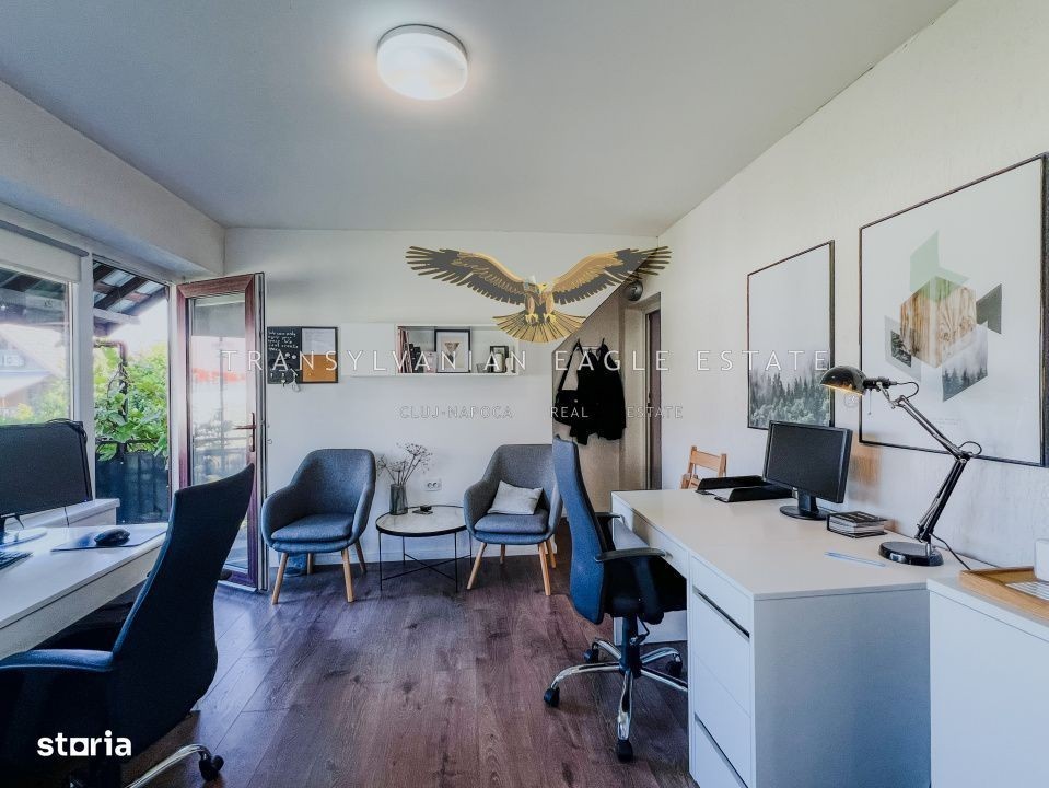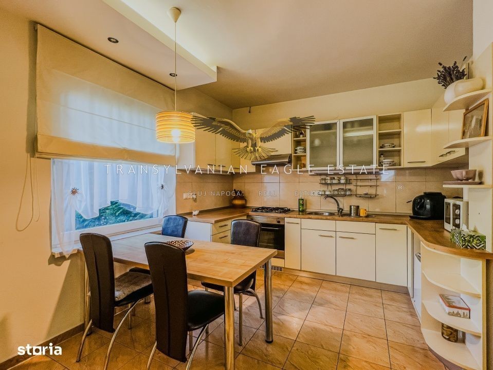 Situată în proximitatea hotelul Grand Hotel Italia Cluj, la distanță bună față de cartierul Andrei Mureșanu si zona centrală a orașului Cluj-Napoca, următoarea casă individuală reprezintă oportunitatea ideală de închiriere. Construită pe un teren cu o suprafață măsurată de 783 de m2, casa reprezintă o combinație perfectă dintre confort și privacy oferit. Structura construcției este: D+P+M+POD, fiind compartimentată astfel: Demisolul dispune de 95 m2 utili, fiind conceput ca și spațiu de atelier/garaj auto, dispune de: acces auto și pietonal, trei încăperi, o cameră tehnică, un mic oficiu și wc; Primul nivel al casei individuale este reprezentat de parter, fiind compus din: o zonă de living, o cameră, zona de dinning separată, zona de bucătărie si o baie. De asemenea, există o ieșire pe singura terasă spațioasă a casei, având o suprafață utilă de 17,7 m2. Al doilea nivel este compus din partea de etaj-mansardă care are o structură de înălțime corespunzătoare, fiind compusă din: două dormitoare, o cameră construită ca și spațiu de birou office cu acces de pe scara exterioară, două băi si o bucătărie; Podul casei individuale este amenajat modern ca fiind apartament, având 60 de m2 utili și fiind compartimentat astfel: o zonă de bucătărie open space, dormitor si baie. În partea din față a casei, există loc pentru opt parcări + o parcare disponibilă în partea de demisol. Dacă sunteți o familie interesată să locuiască într-un cartier rezidențial superb și liniștit, care oferă accesibilitate bună față de zona centrală a orașului Cluj-Napoca sau o companie: cabinet dentar/altă activitate, această proprietatea reprezintă o oportunitate ideală de închiriere. Așadar, vă invităm călduroși să vizionați această proprietate.