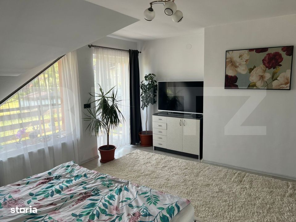 Casă tip duplex complet mobilată și utilată în Bărdășești - priveliște panoramică, zonă liniștită Vă propunem spre vânzare o casă tip duplex situată într-o zonă liniștită din Bărdășești, perfectă pentru o familie care caută confort, intimitate și o conexiune cu natura. Imobilul este amplasat pe un teren de 268 mp, cu posibilitatea de achiziționare a unui teren suplimentar situat în partea din spate. Proprietatea este construită din cărămidă, are fundație din beton, acoperiș din țiglă, ferestre termopan și izolație exterioară cu polistiren. Compartimentare: Parter: bucătărie, hol, cameră de zi spațioasă, grup sanitar, cămară (debara), windfang, casa scării și garaj integrat. Etaj (mansardă) : 3 dormitoare, grup sanitar, casa scării și 3 balcoane cu vedere panoramică. Casa se vinde complet mobilată și utilată, pregătită pentru mutare imediată. Facilități exterioare: Iaz cu pește, perfect pentru momente de relaxare Zonă de grădină bine întreținută Pomi fructiferi Priveliște panoramică deosebită Proprietatea se află într-un cartier liniștit, cu vecini civilizați, oferind un cadru ideal pentru traiul zilnic sau chiar ca reședință de vacanță. Vă așteptăm cu încredere la vizionare!