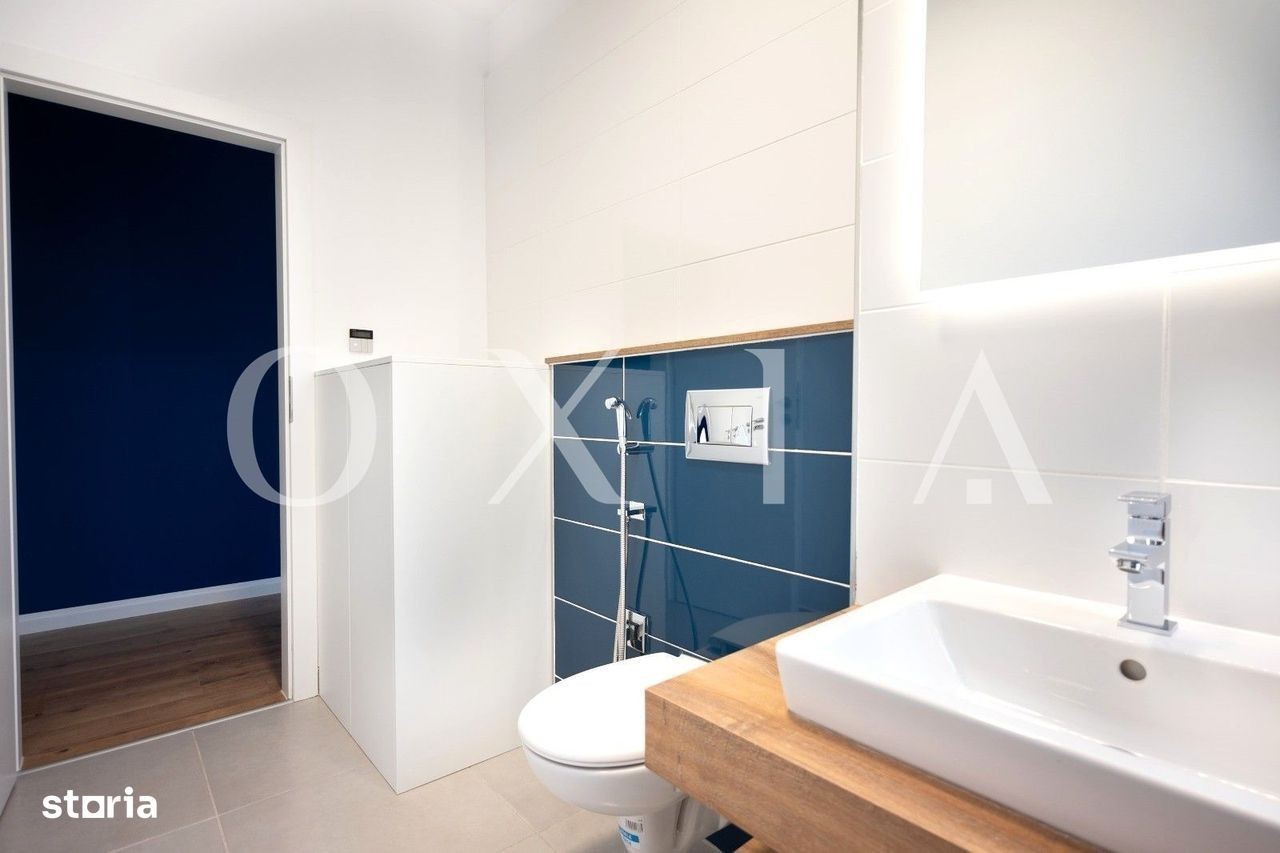 OXIA The Real Estate Agency prezinta spre inchiriere un apartament premium cu 2 camere, situat in Timisoara in ansamblul rezidential Nord One Botanic, intr-un bloc nou cu 9 nivele, la etaj 1, cu suprafata de 59 MP utili + balcon, compartimentat astfel: -Hol acces -Living spatios cu bucatarie open space -Dormitor -Baie cu cada si geam pentru aerisire naturala -Balcon Caracteristici: - Ferestre supradimensionate pentru o luminozitate abundenta. - Parchet de tip LVT - Mobilier din MDF facut la comanda. - Aplicatie smart prin care poti controla temperatura din apartament din orice locatie te afli. - Panouri solare care vor asigura incalzirea apei fara niciun cost pentru rezidentii complexului Nord One. - Loc de parcare subteran inscris in CF, acces pe baza de telecomanda - Boxa pentru depozitare Imobilul dispune de doua ascensoare moderne, asigurand accesul facil catre fiecare etaj. Apartamentul beneficiaza de amenajari moderne: usa intrare metalica, ferestre PVC cu geam termopan, placi de gresie/faianta, parchet, videointerfon. Confortul termic este asigurat prin intermediul centralei pe imobil cu incalzire in pardoseala cu termostate ambientale in fiecare incapere si a sistemului de climatizare. Apartamentul se vinde mobilat si utilat conform prezentarii. Vecinatati: Parcul Botanic - 1 minut, Iulius Town - 5 minute, United Business Center - 5 minute, Piaţa Unirii - 5 minute, Piaţa 700 - 7 minute PRET: 600 EURO + Garanti (1000 Euro) + Comision Agentie. Oferim consultanta juridica si financiara pe tot procesul tranzactiei. Pentru mai multe detalii despre aceasta proprietate, ne puteti contacta la numarul de telefon