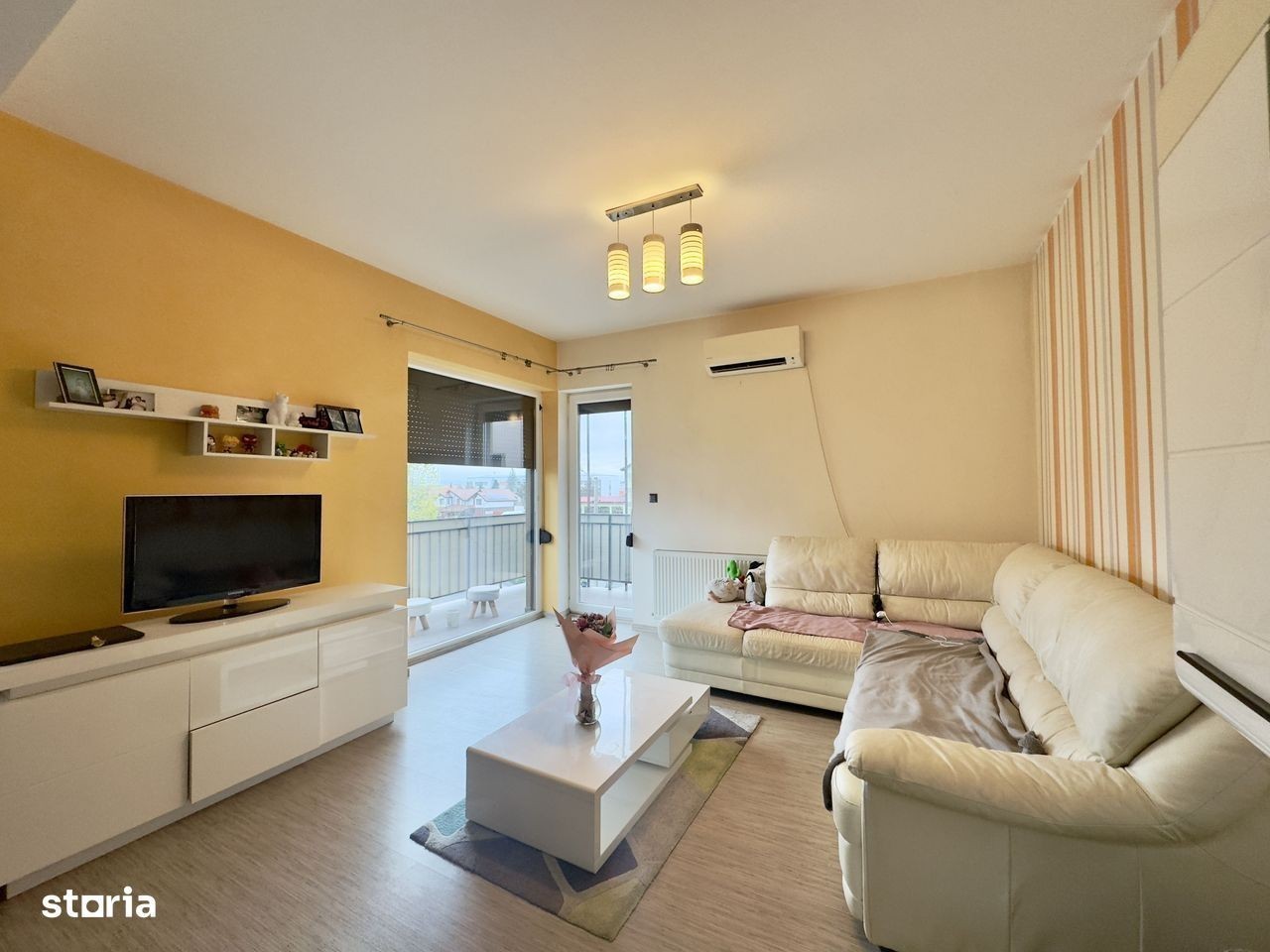 Va propunem spre vanzare apartament cu 2 camere, cu suprafata utila de 55 MP plus balcon, situat la etajul 2 intr-un bloc izolat termic, in Giroc-Eso. Compartimentare: Hol generos Living cu bucatarie open space, Dormitor Baie Balcon de 9 mp Confortul termic este asigurat de centrala proprie cu incalzire prin calorifere si de sistemul de climatizare. Apartamentul dispune de un loc de parcare. Clasa energetică A. Pret: 98 000 euro + comision