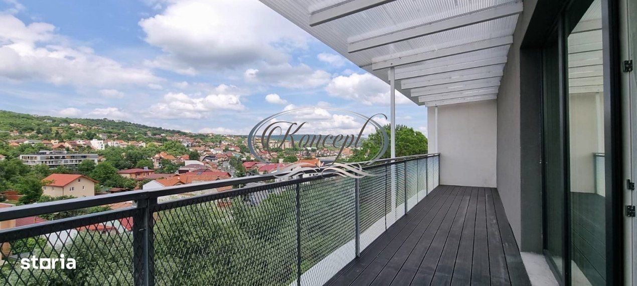 Koncept Imobiliare va ofera spre inchiriere un penthouse deosebit, situat in zona strazii Maramuresului, intr-un imobil nou construit in anul 2022, pozitionat intr-o zona accesibila, cu legaturi rapide catre principalele puncte de interes ale orasului. Proprietatea este dispusa pe doua niveluri si beneficiaza de o orientare mixta, care asigura luminozitate pe tot parcursul zilei si o panorama deosebita ce poate fi admirata din toate spatiile exterioare. Cu o suprafața utila de 115 mp, la care se adauga doua terase si doua balcoane totalizand 58 mp, penthouse-ul ofera un concept spatios si aerisit, gandit pentru un stil de viata modern. Compartimentarea este functionala si include doua dormitoare elegante, living generos, bucatarie open-space complet echipata, zona de dining, dressing walk-in, doua bai si spatiile exterioare care extind considerabil confortul locativ. Proprietatea este proaspat finisata cu materiale premium, mobilier modern si electrocasnice performante, toate integrate intr-un design coerent care pune accent pe calitate si confort. Climatizarea asigura un ambient optim in orice sezon, iar incalzirea este realizata prin centrala termica proprie. Imobilul dispune de lift, iar pentru un plus de comoditate, in pret este inclus si un loc de parcare situat in subteranul cladirii. Terasele generoase, privelistea panoramica si nivelul ridicat de finisare transforma acest penthouse intr-o alegere excelenta pentru un cuplu modern care isi doreste un spatiu contemporan, complet echipat si usor accesibil, intr-o zona in continua dezvoltare. Proprietatea este disponibila imediat. Pentru informatii suplimentare, programarea unei vizionari sau pentru a afla oferta noastra completa va stam la dispozitie telefonic, prin e-mail sau la sediul agentiei noastre, pe str. Aviator Badescu, nr. 19, Cluj-Napoca.
