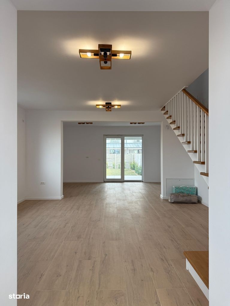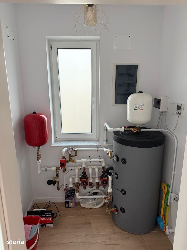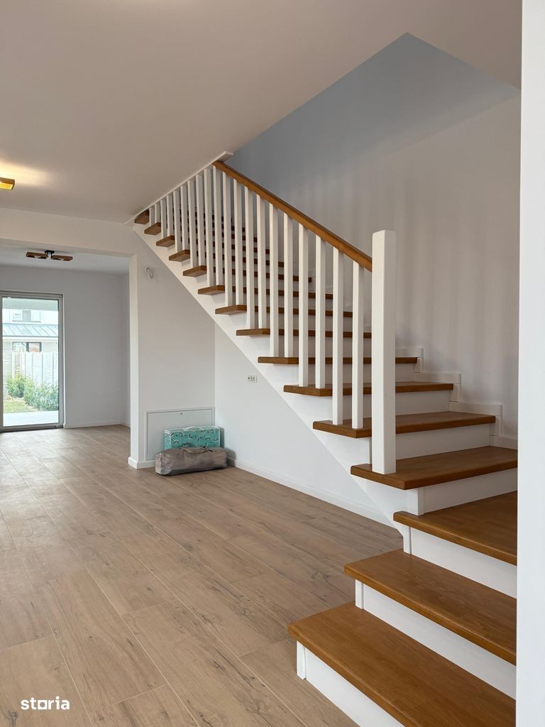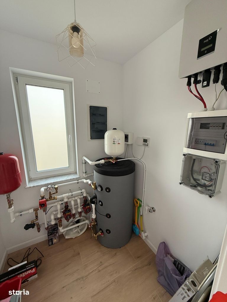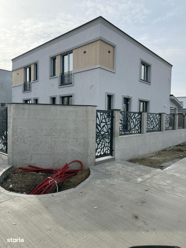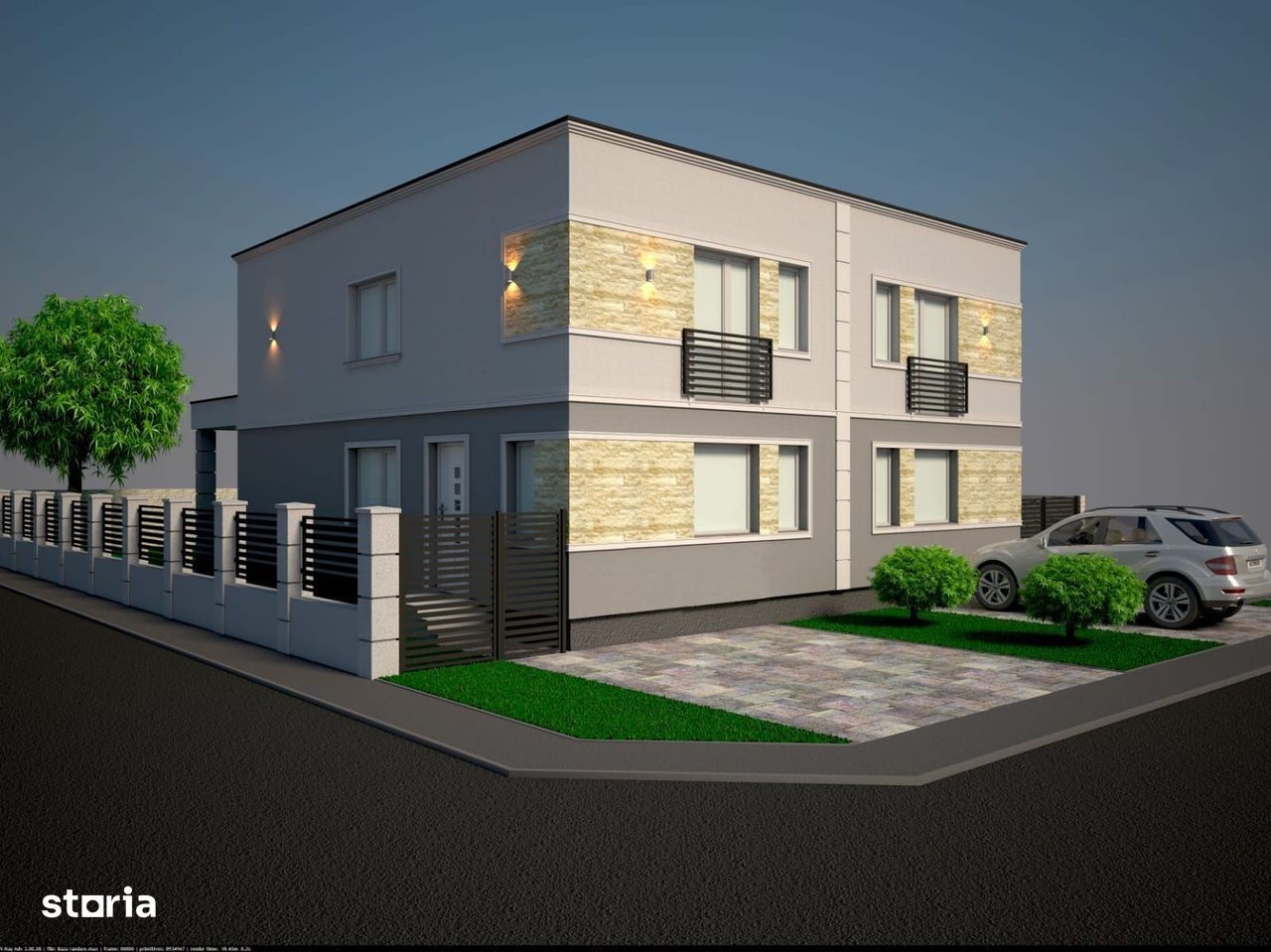 Comision 0%! Direct de la proprietar, 1/2 duplex cu 4 camere, tipologia P+1E, echipat cu pompe de caldura și panouri fotovoltaice, cu suprafata utila de 118mp, și teren de 270mp, compartiemntat astfel: PARTER: - hol - camera tehnica - baie - living - bucatarie - terasa acoperita ETAJ: - 3 dormitoare - baie DETALII TEHNICE: - construtia este realizata cu materiale de inalta calitate - caramida porotherm de 25cm - izolatie cu polistiren CAPAROL Dalmatine de 15cm EPS100 - tamplarie REHAU, sticla tripan de 5cm, feronerie roto, bariera calda, glafuri de marmura - curent trifazic - pompe de caldura - panouri fotovoltaice - incalzire în pardoseala, grup de pompare, servomotoare si automatizare pe fiecare etaj - termostate de ambient în fiecare incapere - gard de aluminiu în fata casei - imprejmuire cu gard de beton - beton amprentat în fata casei UTILITATI: - curent - apa - canalizare proprie - strada asfaltata - iluminat stradal Detalii pret: 143.200 EUR/la cheie Comision 0%!