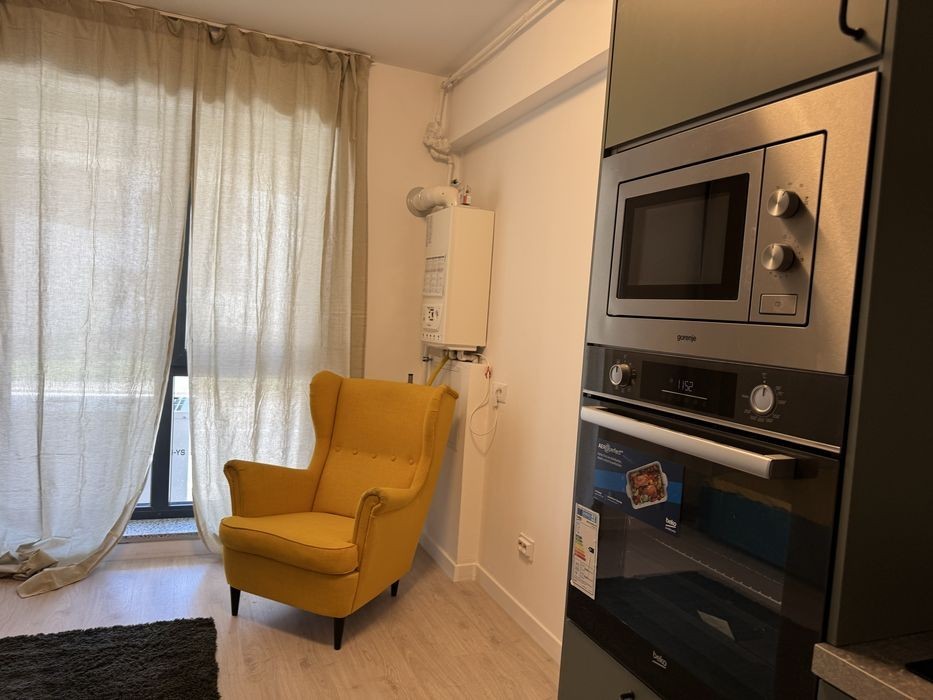 Studio de inchiriat - Ivory Residence Pipera - Parter - 37 mp utili - 500 euro/luna - Complet mobilat si utilat Studio modern, situat la parterul ansamblului Ivory Residence, intr-o zona linistita din Pipera. Ansamblul dispune de spatii verzi, loc de joaca pentru copii, livada de pomi fructiferi, paza cu personal de securitate si sistem integrat de supraveghere video Acces prin cele 10 bariere ale ansamblului cu iesire in Bulevardul Pipera sau rondul de la OMV Suprafata utila: 37 mp Compartimentare eficienta: zona de zi, dining, dressing Parter inalt - acces facil si lumina naturala Dotari si finisaje: • Centrala proprie si incalzire in pardoseala • Aer conditionat • Bucatarie IKEA (MDF) complet echipata: plita electrica Electrolux, cuptor gătire inteligentă cu senzori și conexiune wi fi, cuptor cu microunde, masina de spalat vase, frigider, chiuveta multifunctionala • Dressing IKEA Locatie: ansamblul Ivory Residence, intr-o zona retrasa si verde, aproape de Pipera Plaza, Promenada Mall si mijloace de transport. Metro Pipera 25 min de mers pe jos Chirie: 500 euro/luna Cu loc de parcare 550 euro/luna Garanție: 600 euro Plata se face lunar, in avans