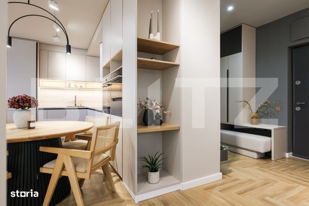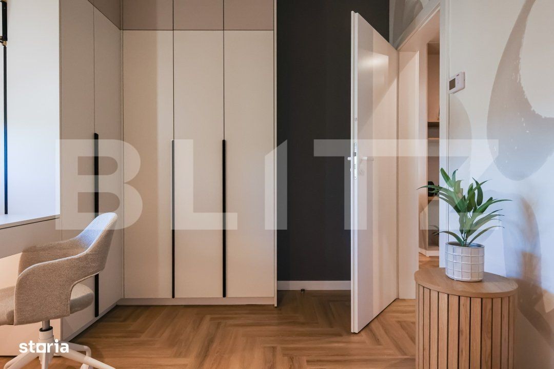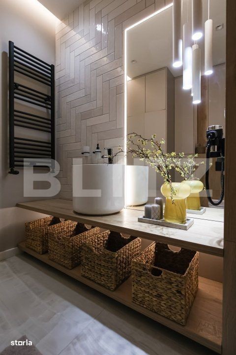 Blitz vă oferă spre inchiriere un apartament cu 3 camere amenajat ultra-modern, situat într-unul dintre cele mai apreciate proiecte rezidențiale - Concept 9. Ideal pentru cei care caută confort, stil și calitate. Compartimentare: - Living open space cu bucătărie - 2 Dormitoare spațiose - 2 Bai cu obiecte sanitare Roca - Spațiu tehnic (mașină spălat + uscător) - Balcon generos Dotări și finisaje: - Încălzire în pardoseală - Aer condiționat - Mașină de spălat + uscător Samsung - Plită electrică, cuptor Klarstein, hotă performantă - Mobilier premium, inclusiv masă cu blat marmură (marca September) - Chiuvetă Quadron + baterie flexibilă Maggie - Uși Porta Doors, parchet SPC Herringbone Apartamentul se inchiriaza exact ca în poze - complet mobilat și utilat, cu electrocasnice de top și finisaje de lux. Bonus: o parcare subterana Vizionări disponibile cu programare!