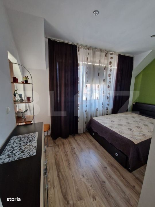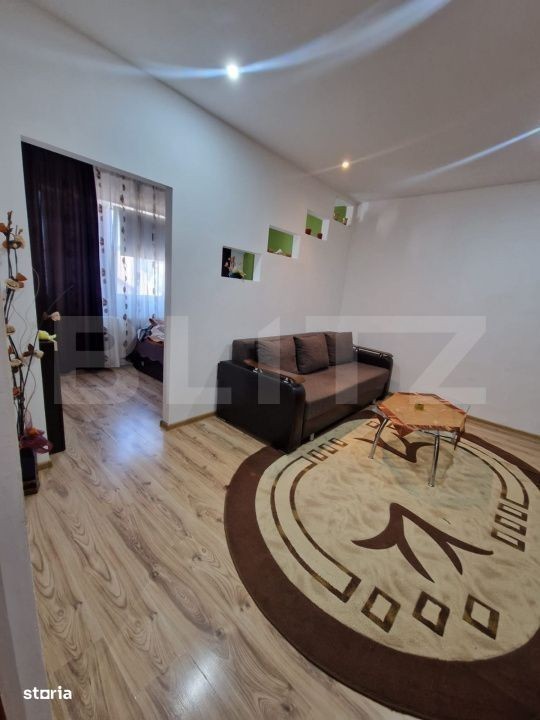 Blitz ofera spre inchiriere un apartament semidecomandat ce te întâmpină cu o atmosferă caldă și primitoare, ideală pentru o persoană care își dorește confort și intimitate. Livingul spațios, amenajat cu tonuri neutre și accente de lemn, oferă un ambient relaxant, perfect pentru serile petrecute acasă. Canapeaua confortabilă și decorul minimalist adaugă o notă de eleganță clasică, iar tavanul înalt și spoturile luminoase creează o senzație plăcută de spațiu aerisit. Dormitorul, separat printr-o deschidere amplă, este luminat natural datorită ferestrei mari și decorat în culori calde, asigurând un cadru intim și odihnitor. Un apartament cu personalitate, întreținut, gata să devină noul tău „acasă”. Disponibil imediat!
