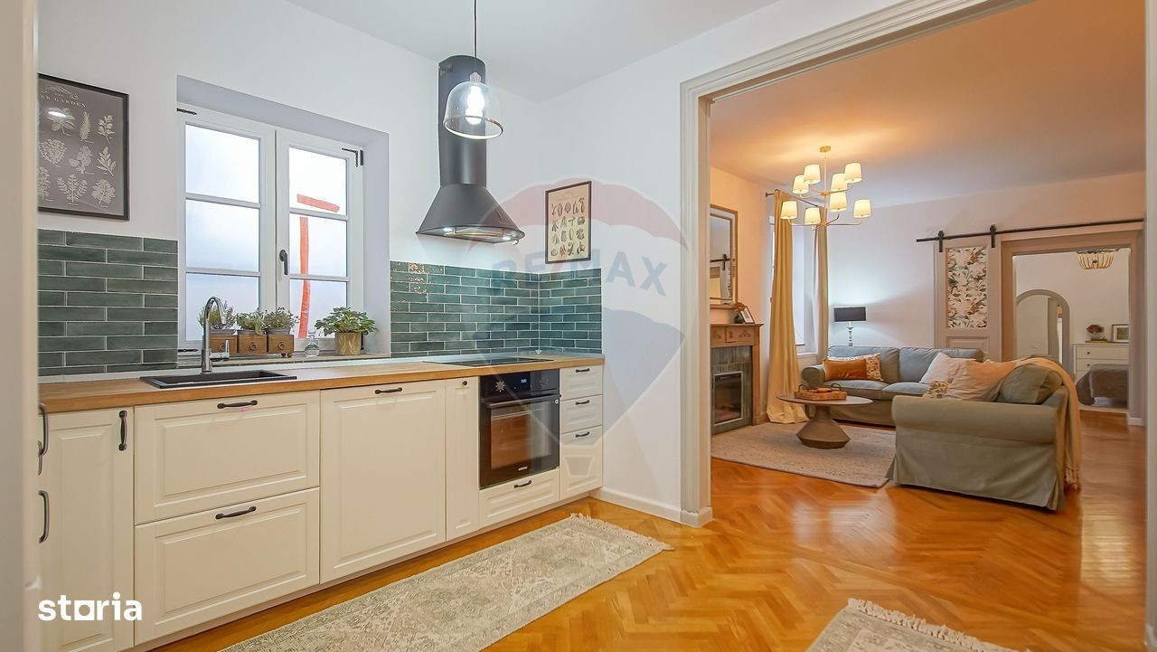 În inima Brașovului, pe una dintre cele mai apreciate străzi din Centrul Istoric - Nicolae Bălcescu nr. 3 - îți prezint un apartament complet renovat, transformat într-un refugiu cald și elegant, inspirat din estetica cottage-chic, unde lumina, liniile naturale și textura lemnului creează o atmosferă de „acasă” din primul pas. Proprietatea are 70 mp utili, inteligent compartimentați în două camere spațioase, o bucătărie luminoasă și o baie modernă, toate finisate cu materiale atent alese și o grijă reală pentru detaliu. Apartamentul nu a fost locuit deloc după renovare - ceea ce înseamnă că viitorul proprietar îl preia ca pe o locuință nouă, într-o clădire cu farmec istoric. Detalii esențiale: - 70 mp utili, două camere generoase, camara, baie, bucatarie - Magazie exterioară: 3,6 mp + 5,3 mp - perfecte pentru depozitare suplimentară - Renovat integral și neutilizat - Mobilat si utilat complet - Design cottage-chic: tonuri calde, texturi naturale, lumină blândă - Casă scării igienizată, fațada interioară recondiționată, șarpantă și streșină refăcute - Poziționat într-o vilă istorică îngrijită, cu doar câteva apartamente La doar 3-4 minute de mers pe jos până în Piața Sfatului, pe o stradă liniștită, cu acces imediat către cele mai frumoase cafenele, restaurante și puncte de interes din centrul vechi. Este acel loc rar în care calmul cartierului se împletește perfect cu energia orașului. De ce este o proprietate unică: Pentru că îmbină farmecul unei case istorice cu confortul unui apartament modern, renovat de la zero. Pentru că oferă acel sentiment de refugiu cald, intim, cozy, imposibil de replicat în blocurile noi. Pentru că este perfect atât ca locuință personală, cât și ca investiție într-una din cele mai căutate zone ale Brașovului. O locuință care nu te invită doar să o vezi - te invită să o trăiești. Va astept cu drag la vizionare!