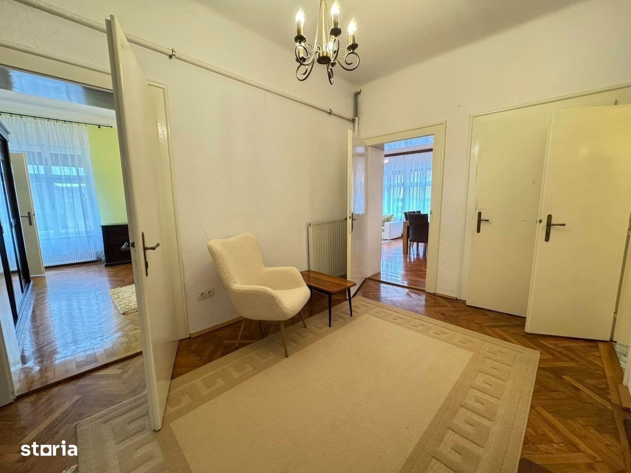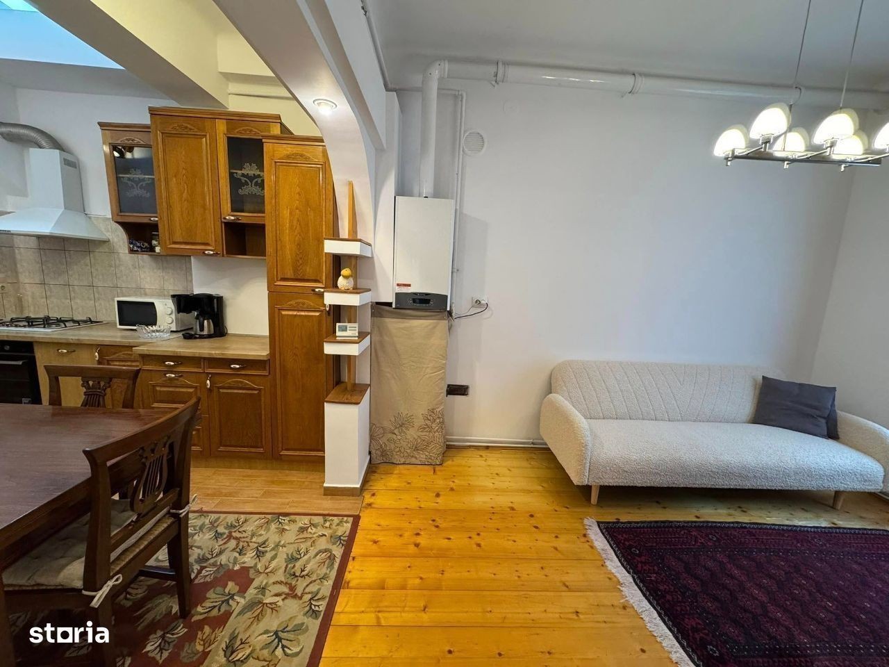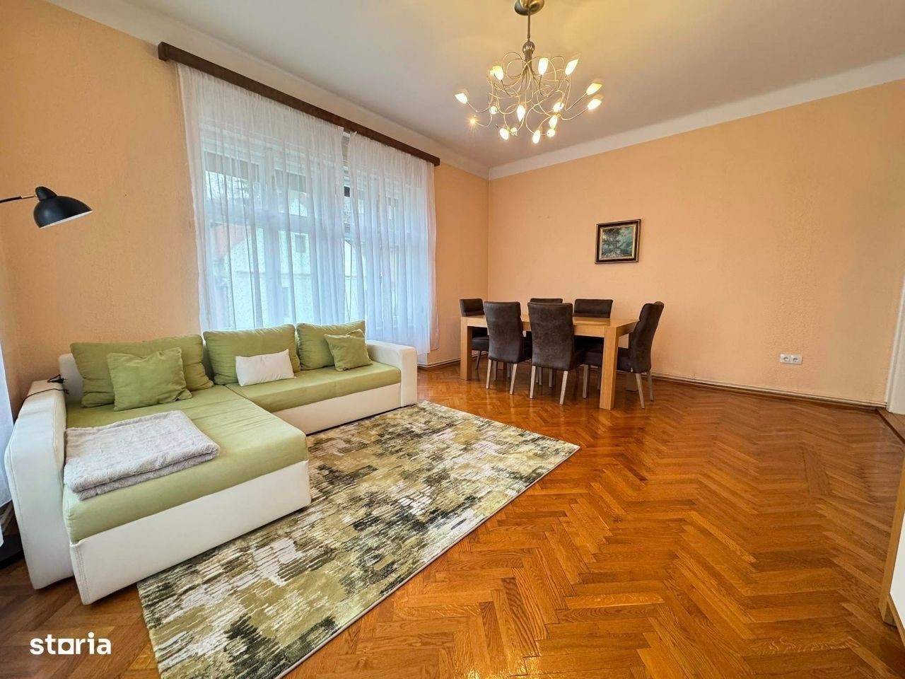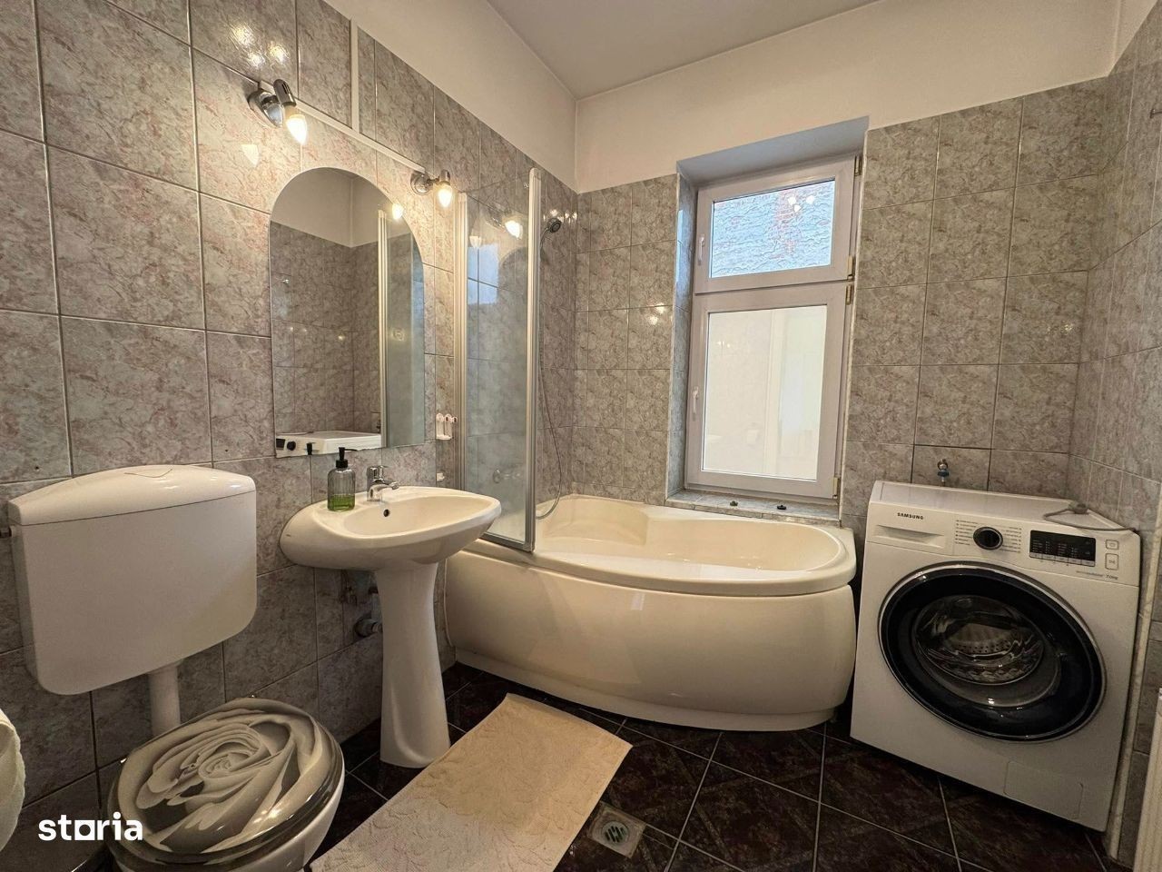 Elenes KW Imobiliare va propune spre închiriere în apartament modern, cochet, aflat la 500 de metri de Piața Mare a orașului. Locuinta are 120 mp, se află la etajul 1 într-o vilă cu 2 apartamente Este formată din living cu bucătărie open space, living mare, 2 dormitoare, hol mare, baie, wc de serviciu, curte și garaj. Apartamentul este mobilat și utilat. Este foarte curat și luminos. Se închiriază la prețul de 550 de euro pe lună