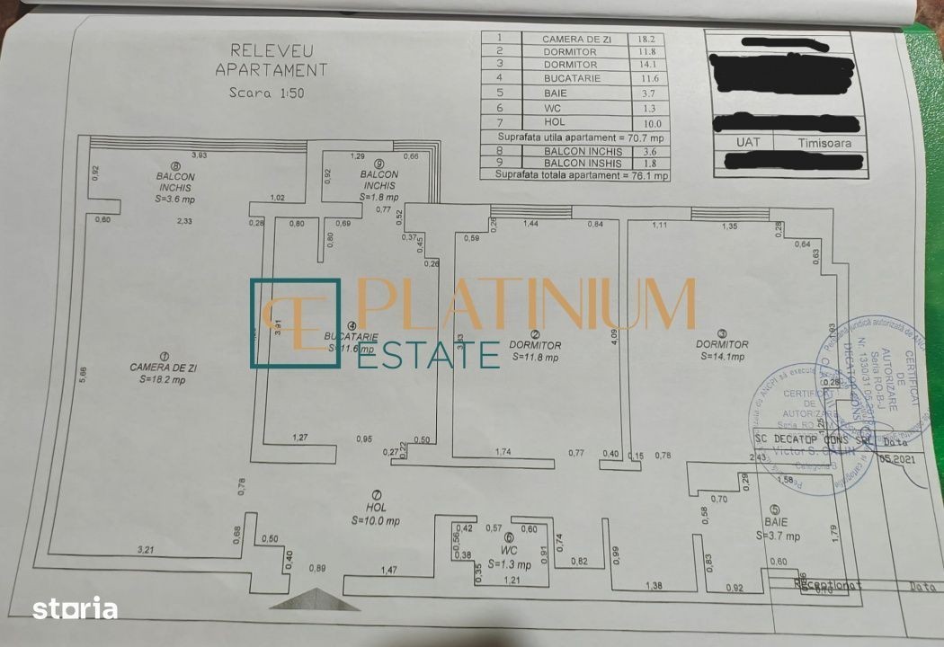 Platinium Estate vă oferă spre vânzare un apartament cu 3 camere decomandat în zona Complexul Studențesc/Ștefan cel Mare. Acesta este situat la etajul 5 al unui bloc cu 7 etaje care dispune de lift, poziționat într-o zonă liniștită cu vecini cumsecade foarte aproape de multe puncte de interes cum ar fi: magazine/supermarketuri, farmacii, școală, Punctele Cardinale, Iulius Mall, stații mijloace de transport în comun etc. Se desfășoară pe o suparafață utilă de 70,7 mp compartimentați astfel: -hol acces -bucătărie cu balcon închis în termopan (1,8mp) -living cu balcon închis în termopan (5,4mp) -dormitor -dormitor -baie cu cadă -baie de serviciu Confortul termic se realizează prin centrală proprie. Dispune de aparat de aer condiționat și boxă la subsol (nu este pe CF). Se vinde mobilat și utilat sau gol în funcție de preferința clientului. Dacă v-am stârnit interesul vă așteptăm cu drag la o vizionare chiar astăzi! Vă putem ajuta cu achiziționarea imobilului prin credit bancar având brokeri de credite ce va stau la dispoziție cu cele mai bune oferte pentru dumneavoastră, acest serviciu fiind complet gratuit. Nr. anunț: P4577