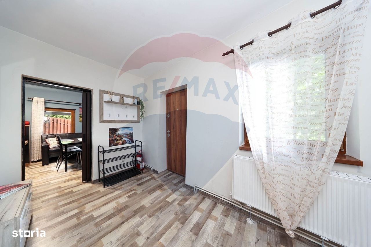 Vă propun spre vânzare o oportunitate rară, o casă/vilă specială situată în inima naturii, pitorescul cartier Șchei din Brașov, în imediata apropiere de Pietrele lui Solomon - un loc încărcat de natură și legendă, cunoscut pentru farmecul său natural și atracție turistică. Această proprietate unică oferă un peisaj de poveste, cu priveliște feerică, de pe balconul luminos și terasa generoasă. Această vilă cochetă, complet mobilată și utilată, este ideală pentru o familie sau chiar două familii, în cazul în care este utilizată în regim hotelier, așa cum a funcționat până în prezent. Cu o priveliște de basm și facilități, oferă tot ce aveți nevoie pentru confort și investiție sigură. Cu un istoric de funcționare în regim hotelier, vila reprezintă un business la cheie, ideal pentru cei care își doresc o investiție într-o zonă cu potențial turistic foarte ridicat. Caracteristici: Suprafață utilă de 99 mp, beneficiind de 4 camere, 1 baie și bucătărie complet utilată; Balcon cu vedere panoramică asupra naturii; Terasă generoasă dotată cu jacuzzi și spațiu pentru grătar - perfect pentru relaxare în aer liber; Renovată recent, se află în condiții foarte bune; Încă funcționează în regim hotelier; Acces facil, dar suficient de retrasă pentru liniște totală. Proprietatea reprezintă nu doar un cămin ideal, ci și o afacere gata preluată, cu potențial turistic ridicat într-una dintre cele mai căutate zone din Brașov. Dacă v-am stârnit interesul de a vizita această unică proprietate datorită poziționării, vă rog să mă contactați pentru întrebări suplimentare sau programarea unei vizionări.