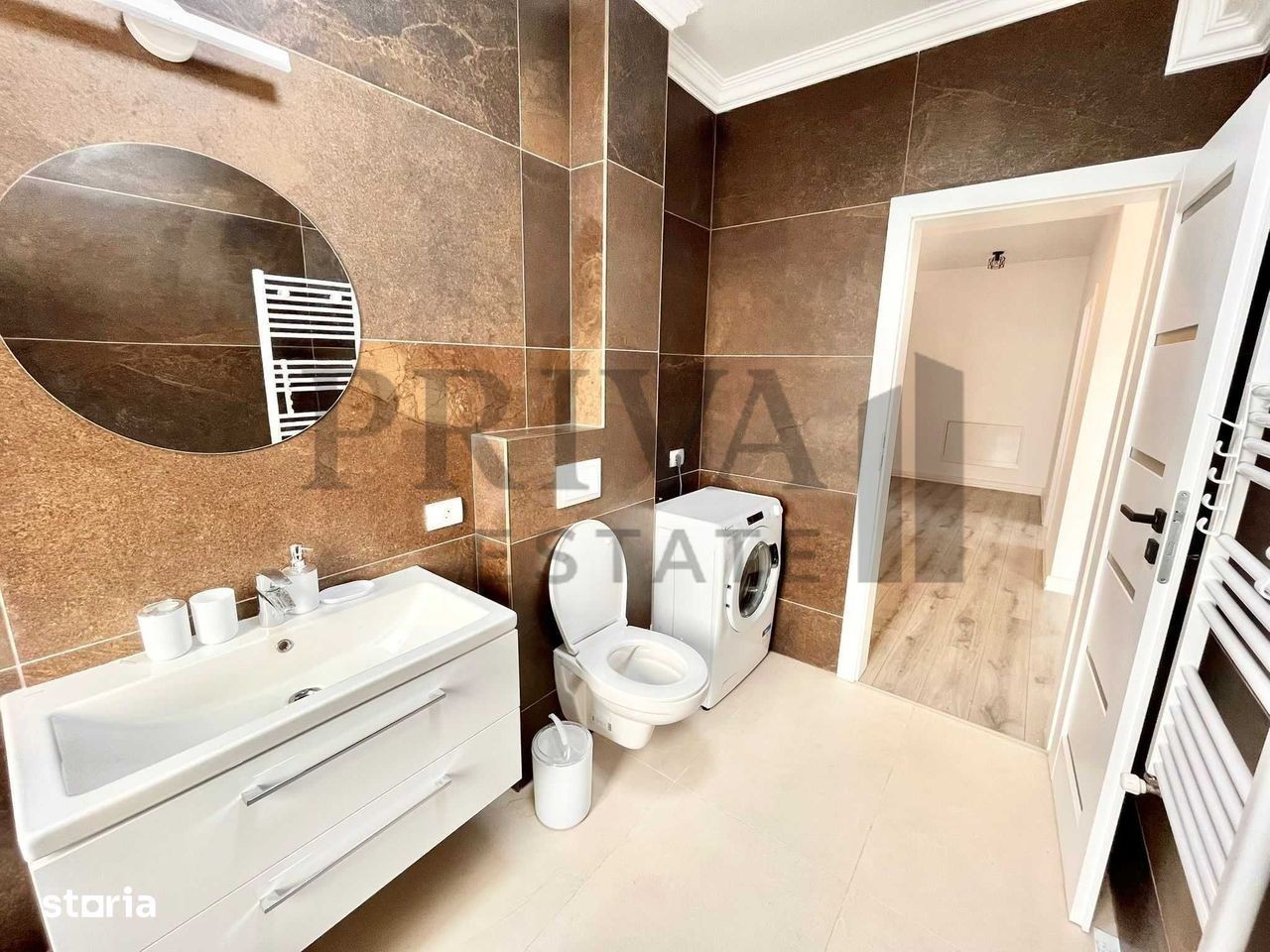 Închiriez apartament NOU, spațios, cu 2 camere, în Giroc - design modern & confort premium Descoperă un apartament recent finalizat, amenajat cu bun gust și dotat cu finisaje de calitate superioară, situat într-o zonă excelentă din Giroc. Ideal pentru persoane care își doresc confort, spațiu și intimitate, într-un ambient modern. Compartimentare inteligentă: Hol de acces generos Living luminos, cu zonă de relaxare și zonă de dining, având două ieșiri către terasa de dimensiuni mari Dormitor spațios, complet mobilat și utilat, prevăzut cu dressing încăpător Bucătărie open-space, mobilată la comandă și complet utilată Baie mare, dotată cu cadă și geam pentru ventilație naturală Terasă acoperită de 17 mp, fără blocuri în față și cu priveliște superbă la apus Dotări & beneficii: Mobilier realizat la comandă, cu spații ample de depozitare Centrală proprie și încălzire în pardoseală pentru un confort termic optim Parcare proprie, monitorizată video Acces securizat în casa scării Localizare ideală: Situat la doar 2 minute de mers pe jos de Penny, Profi NonStop, Lidl, Mega Image și sală de sport - o zonă liniștită, dar cu toate facilitățile la îndemână. Reguli: Nu se acceptă animale de companie Fumatul este interzis în incinta imobilului Preț: 430 € / lună + garanție.